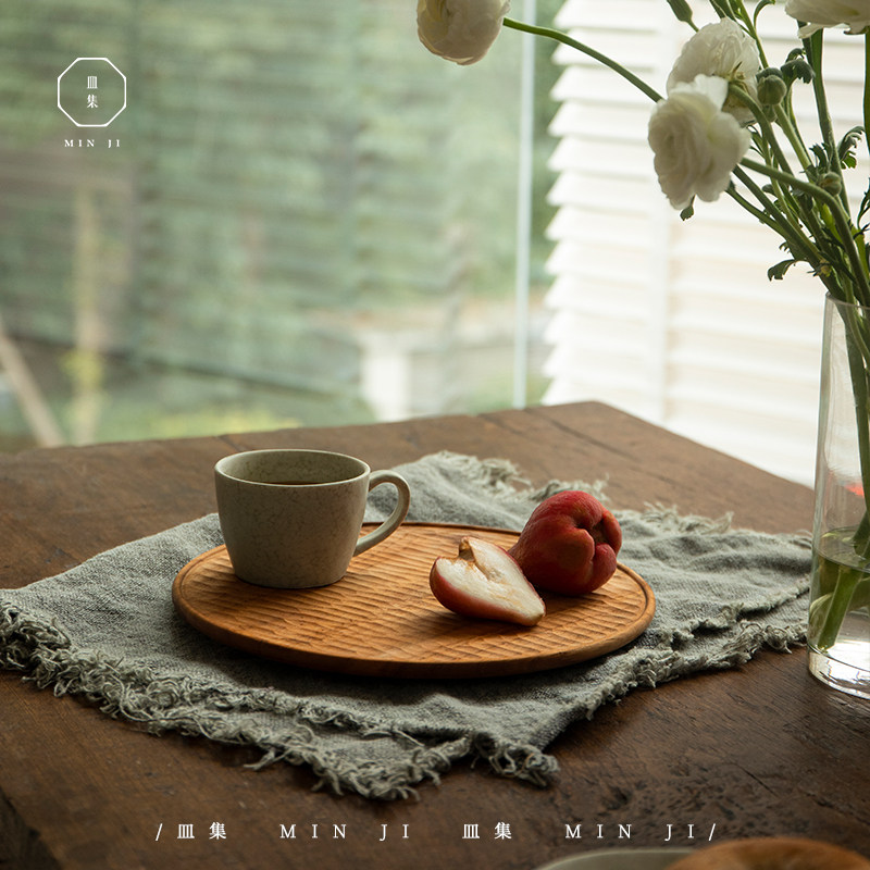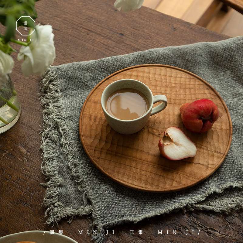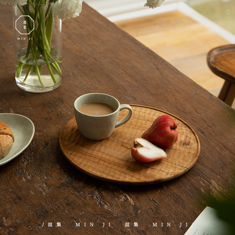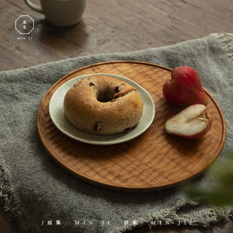 叕木皿集|水波纹圆盘\进口柚木整木圆形茶托盘糕点心水果盘面包板