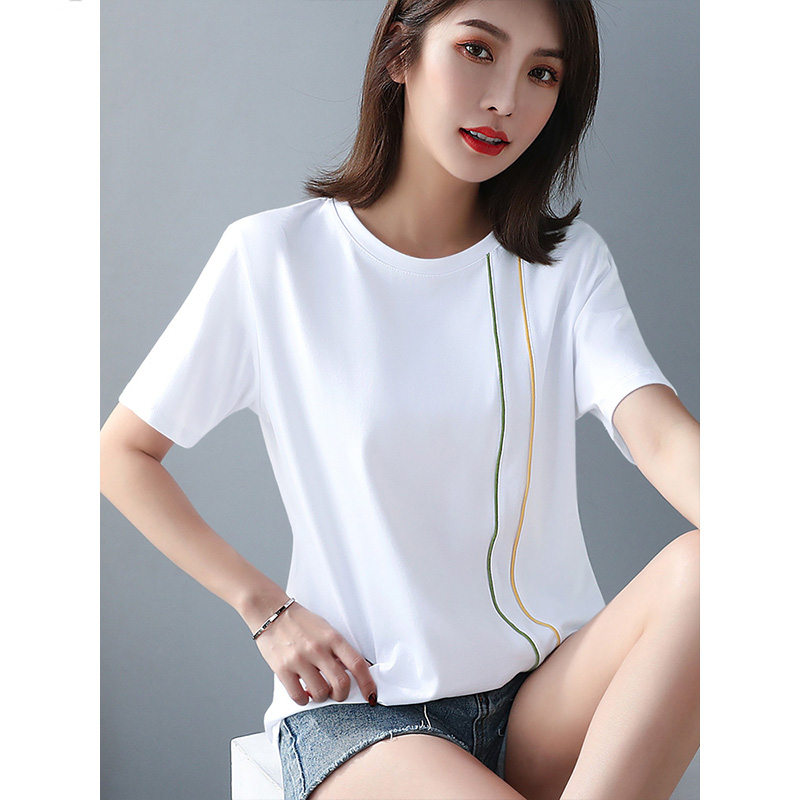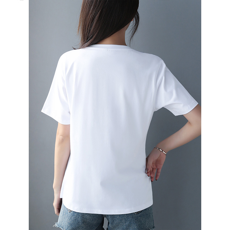 纯棉短袖t恤女夏季白色圆领设计感小众宽松大码休闲半袖体恤上衣