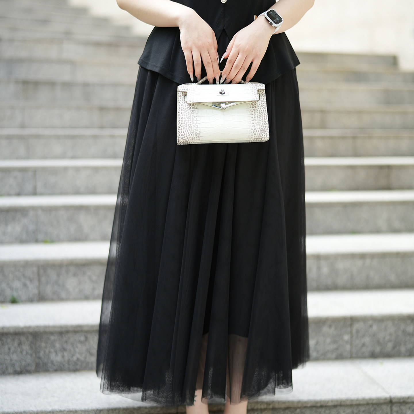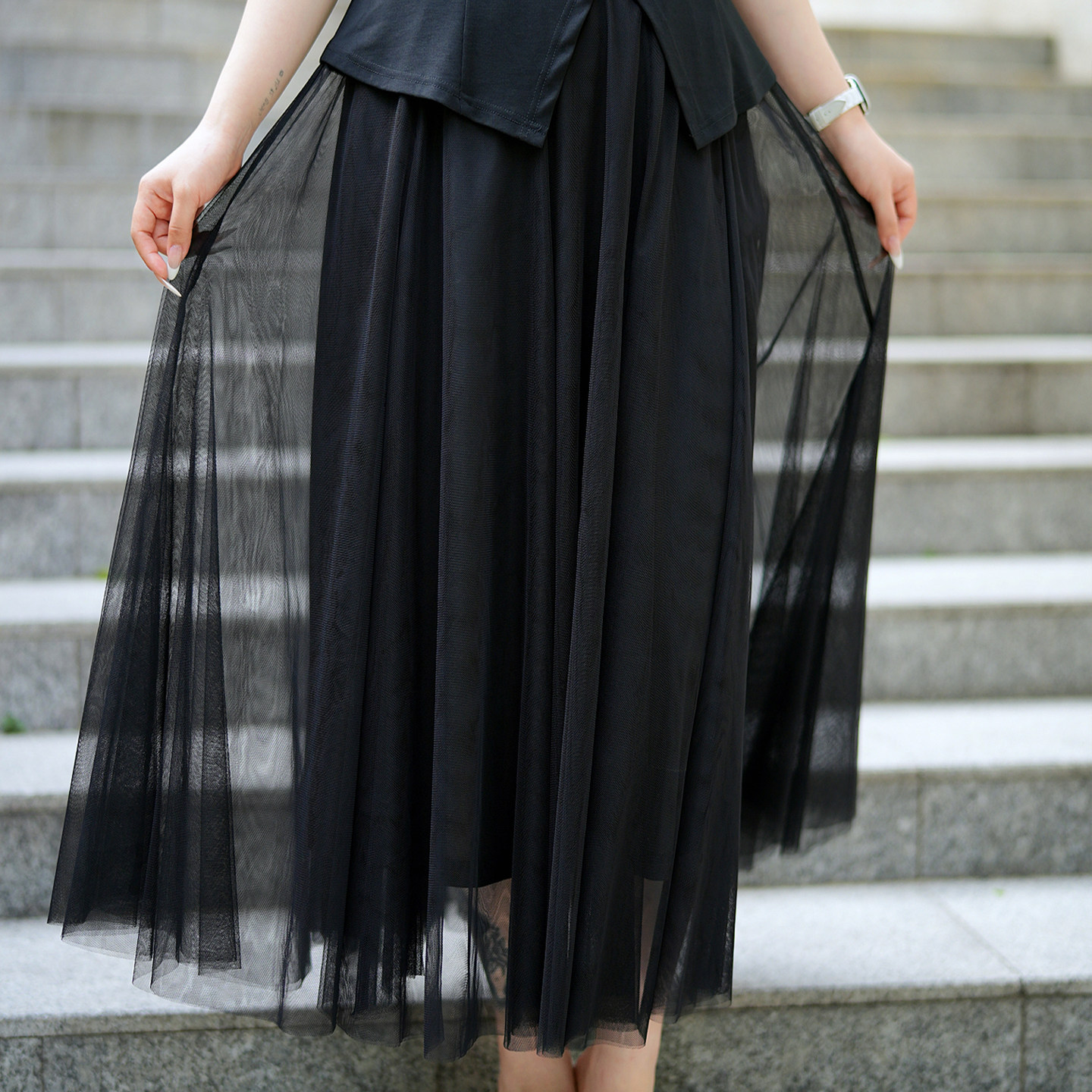【半身裙】XYD71636网纱拼接大摆半身裙中长款显瘦A字摆大码半身