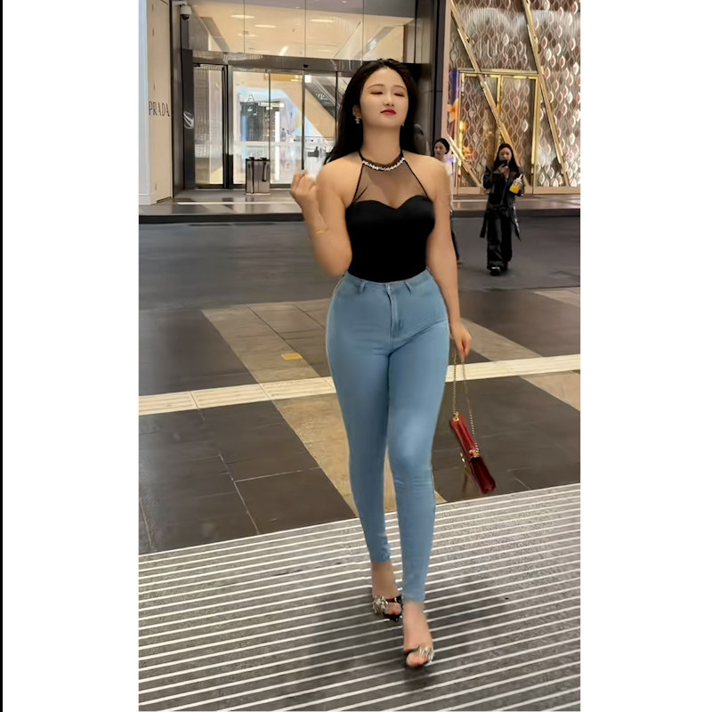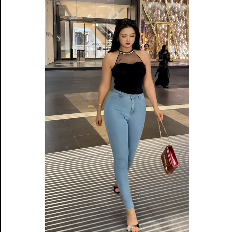 高腰修身小脚蜜桃臀显瘦牛仔裤女