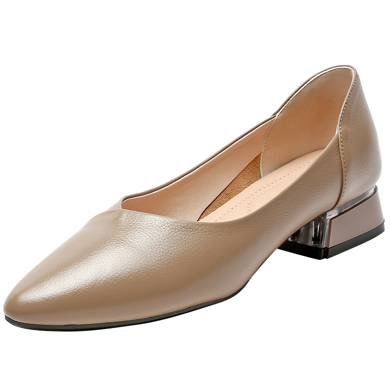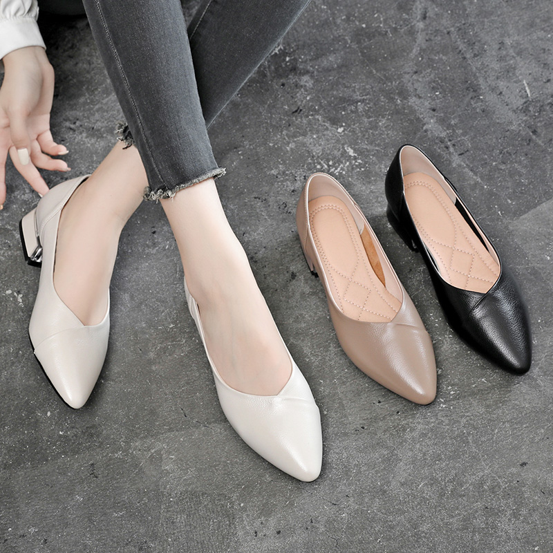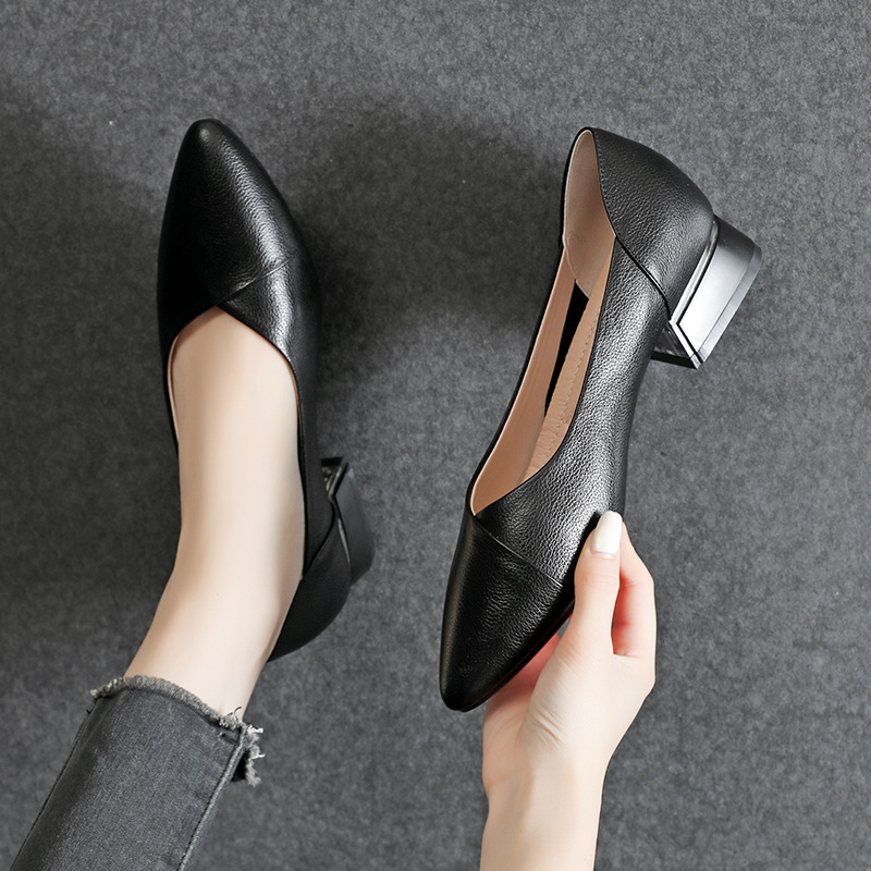尖头单鞋女2025夏季新款百搭浅口软皮女鞋大码真皮工作皮鞋41一43