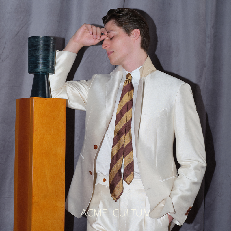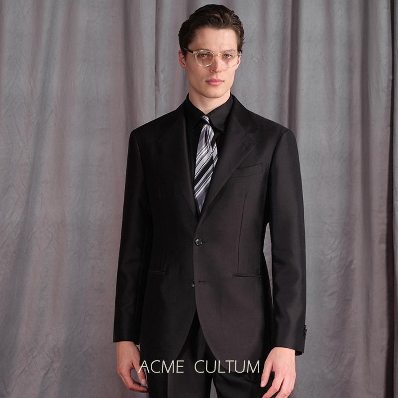 Acme cultum蚕丝羊毛光泽缎面纺意式半里西服套装男休闲正装外套