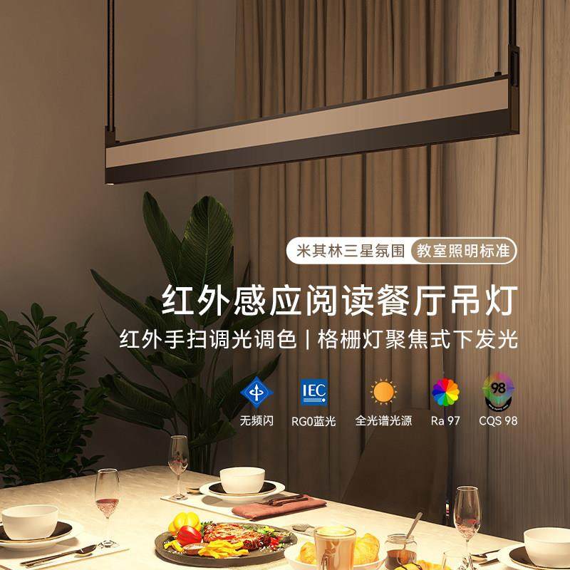 至高补贴20%新特丽护眼餐厅吊灯一字长条极简饭厅灯智能吧台