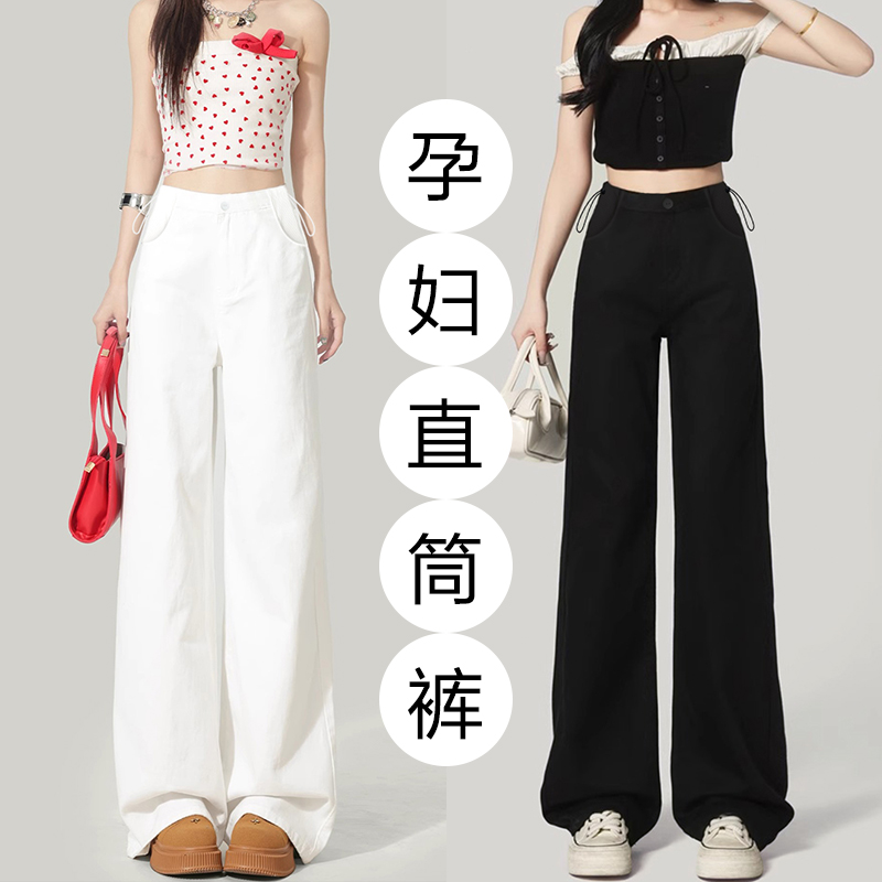 猫人孕妇裤子2025新款春夏款外穿阔腿裤无托腹不勒肚子直筒牛仔裤