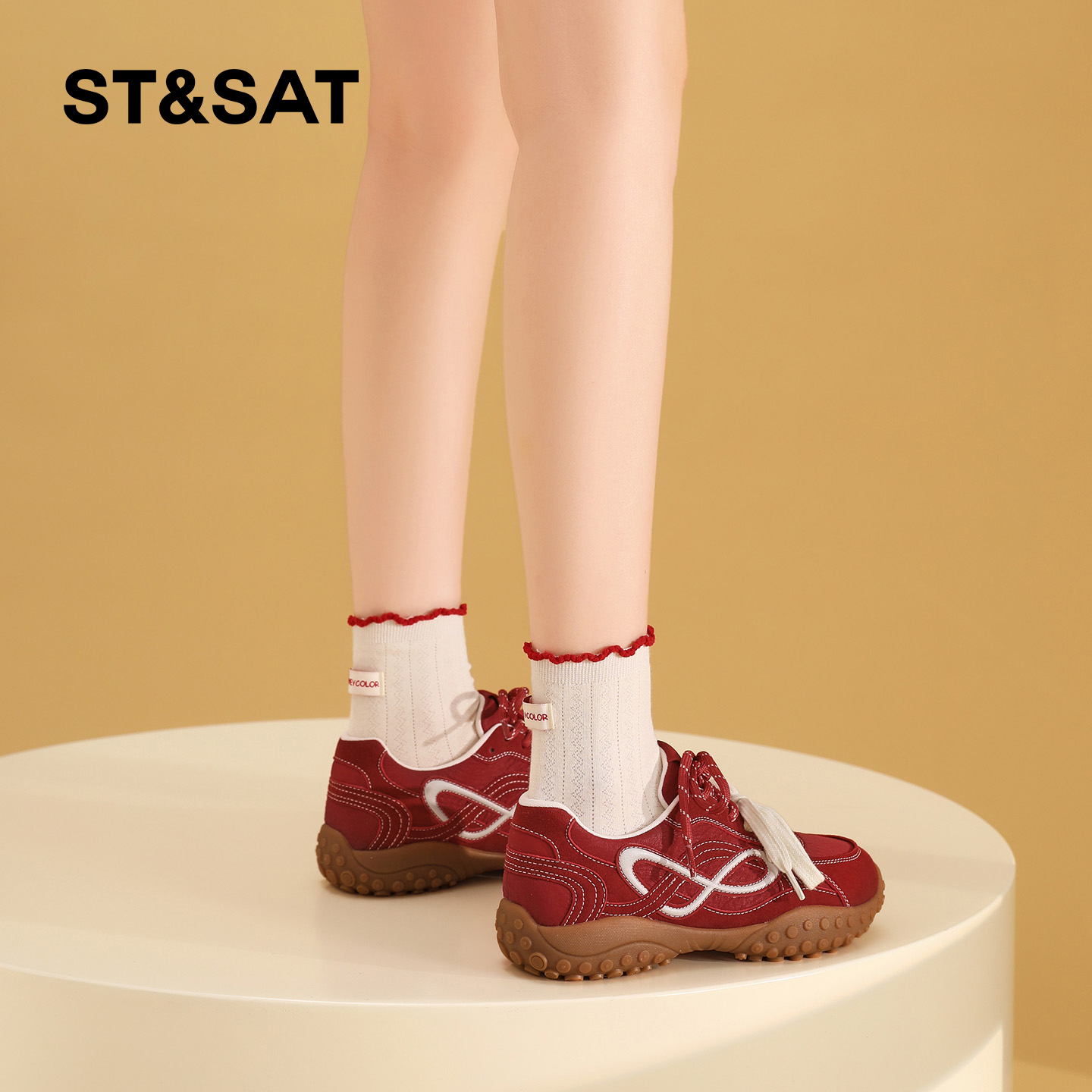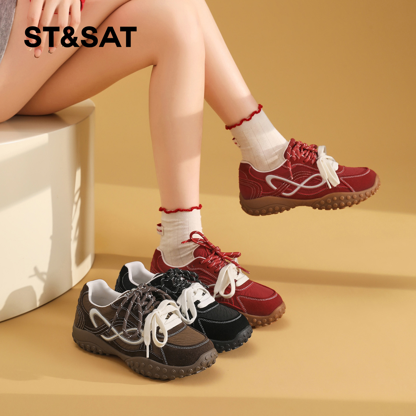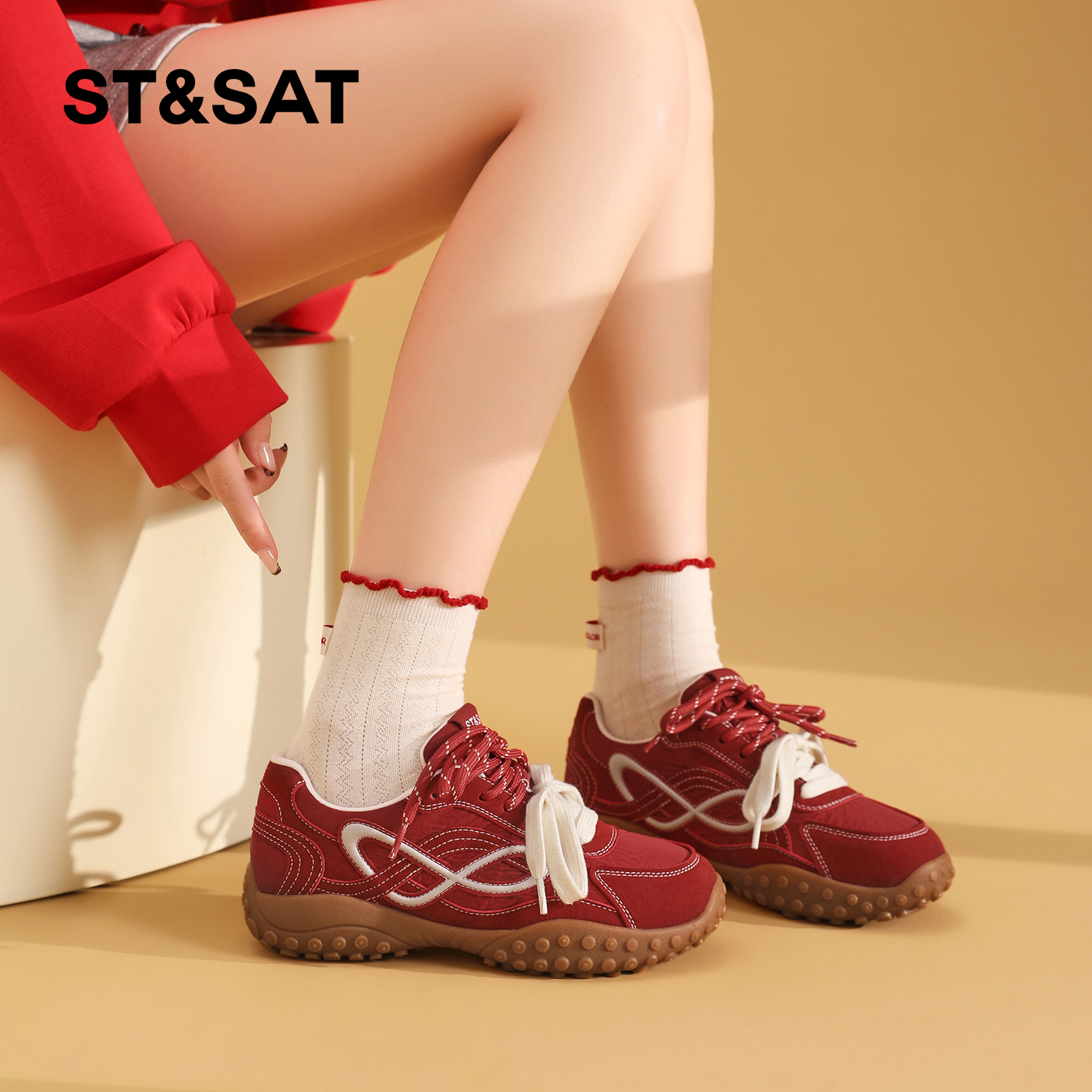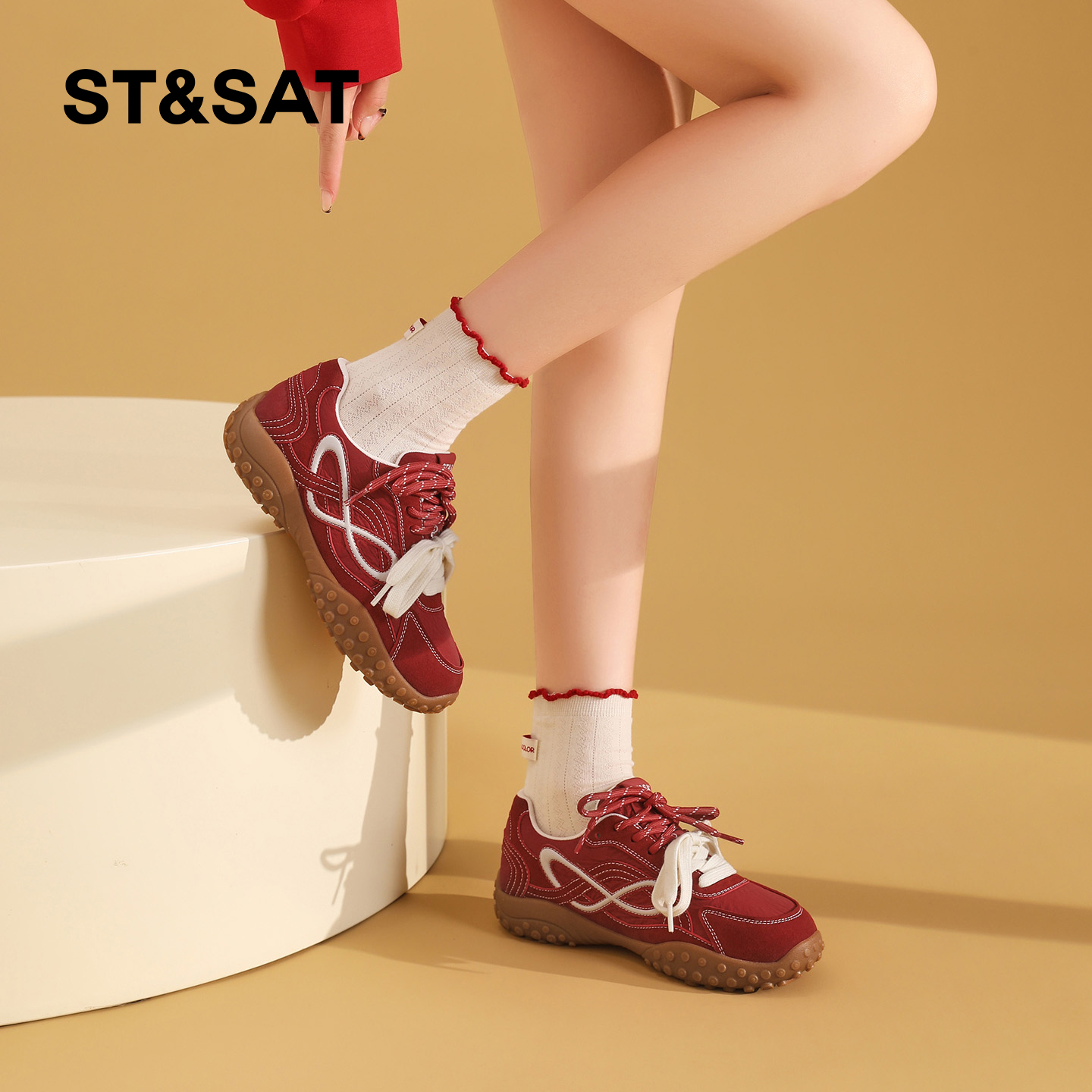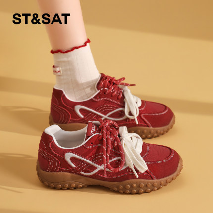 星期六红色德训鞋女2025秋季新款女鞋女款爆款鞋子平底阿甘运动鞋