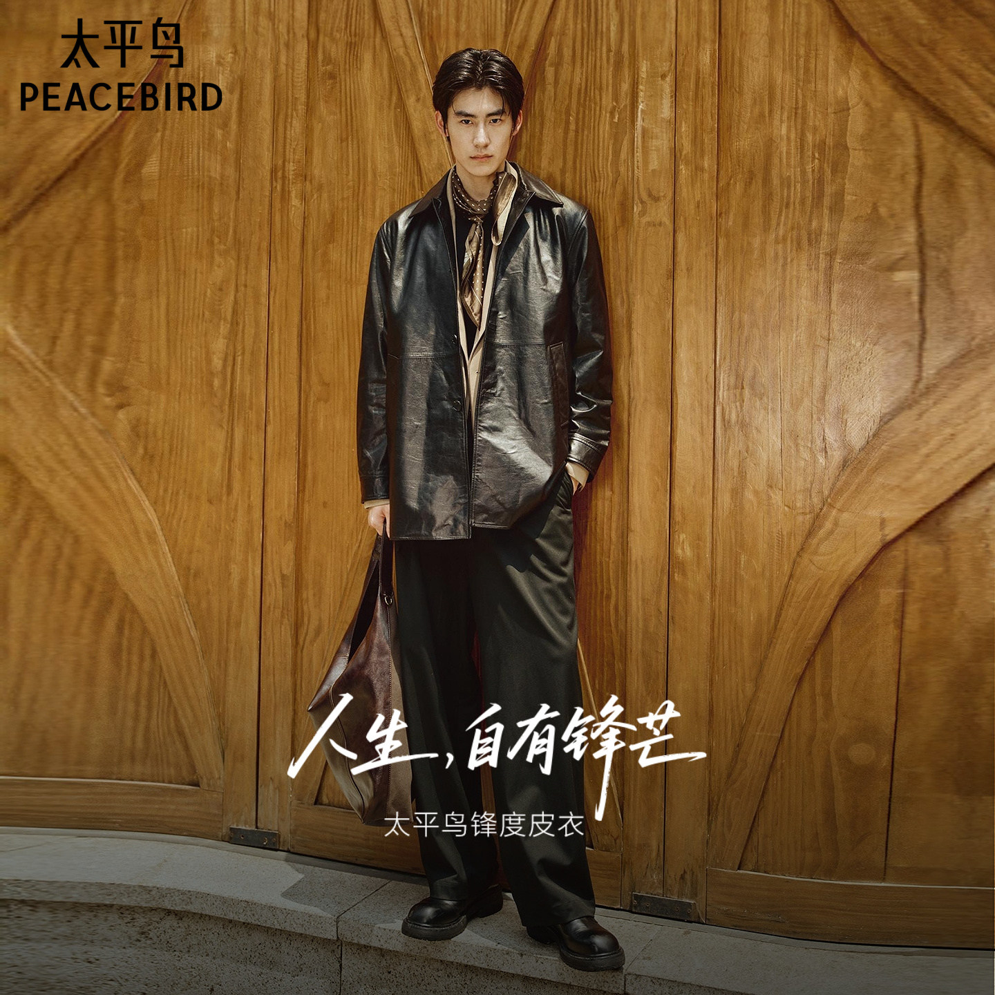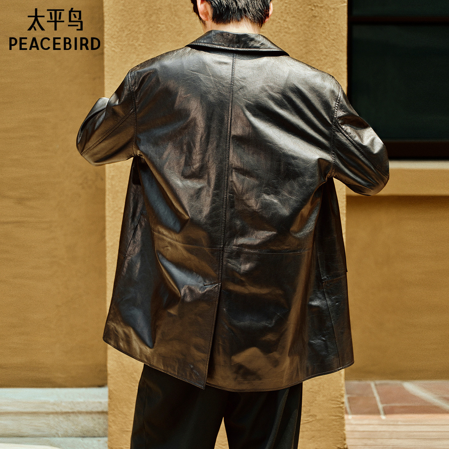 【锋度皮衣】太平鸟男装翻领牛皮外套中长款真皮夹克潮B1BDF4F11