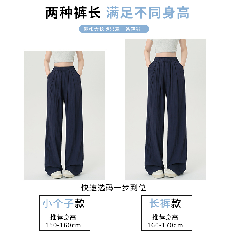 冰丝山本裤女夏季速干亚麻阔腿裤2025新款藏青色垂感休闲奶芙裤子
