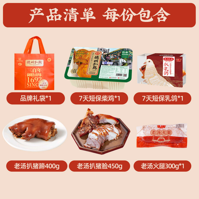 【德州扒鸡旗舰店】气调鲜扒鸡乳鸽猪脸猪蹄实惠肉食套餐即食熟食