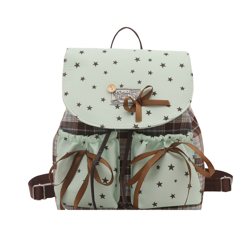 2025韩版小清新星星格纹双肩包女