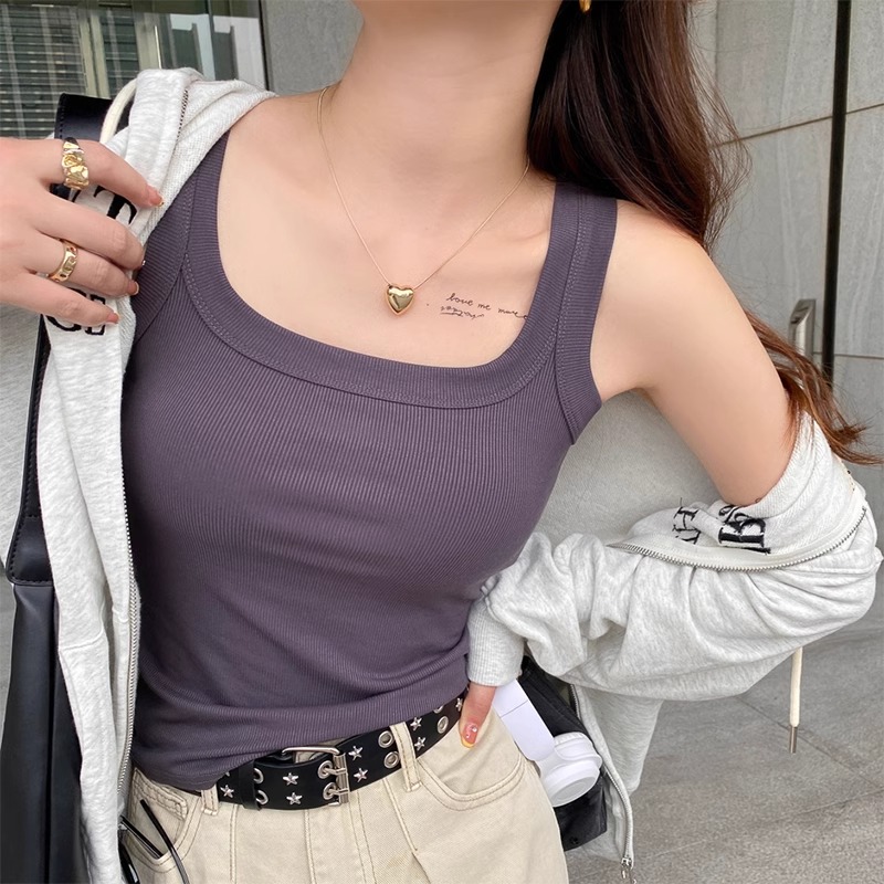灰色吊带背心女内搭2025春夏新款美背带胸垫一体外穿针织打底上衣