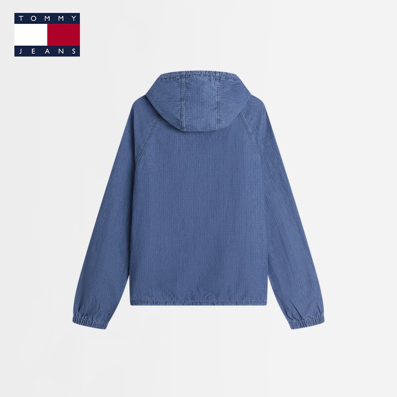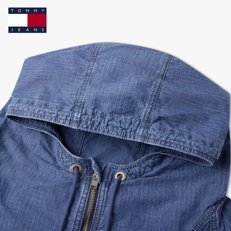 Tommy秋冬男装纯棉美式户外潮流小格纹刺绣轻薄连帽宽松牛仔外套