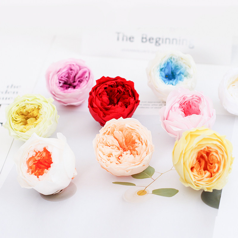 鹿苡A级国产永生花奥斯汀4-5cm保鲜花装饰钥匙扣礼盒玻璃罩材料包