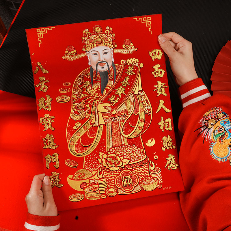 财神到贴画新年春节过年装饰门贴绒布烫金大尺寸年画财神到财神爷