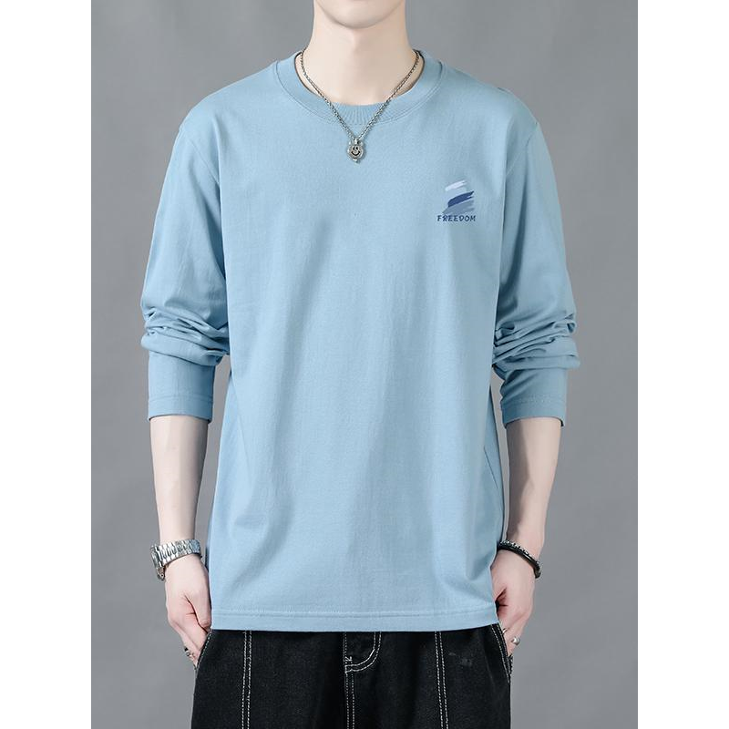 以纯YISHION纯棉长袖t恤男士秋冬宽松内搭上衣青少年圆领休闲打底