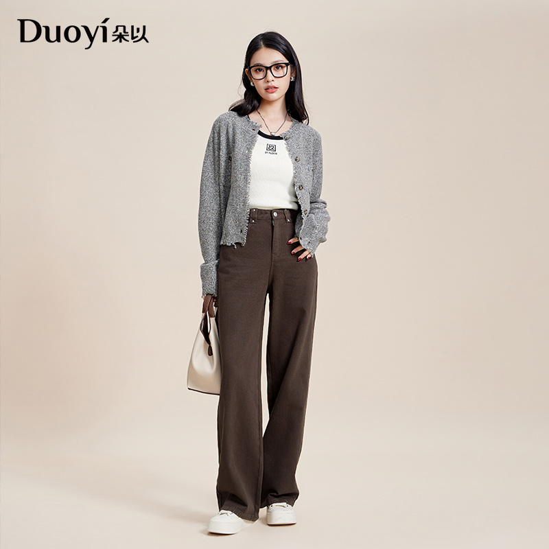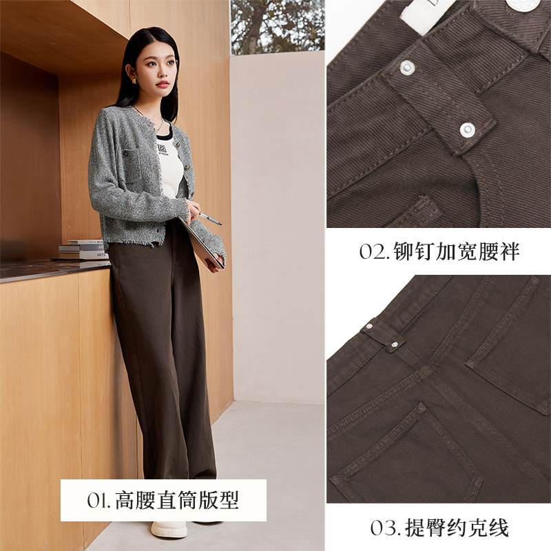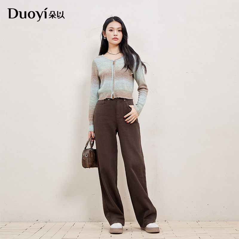 朵以2024秋季新款时尚百搭复古休闲舒适显瘦高腰直筒牛仔裤长裤女