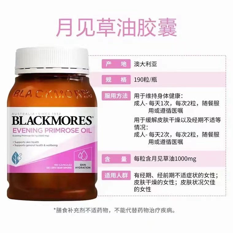 Blackmores澳佳宝月见草油精华软胶囊女性调理保养分泌失调190粒