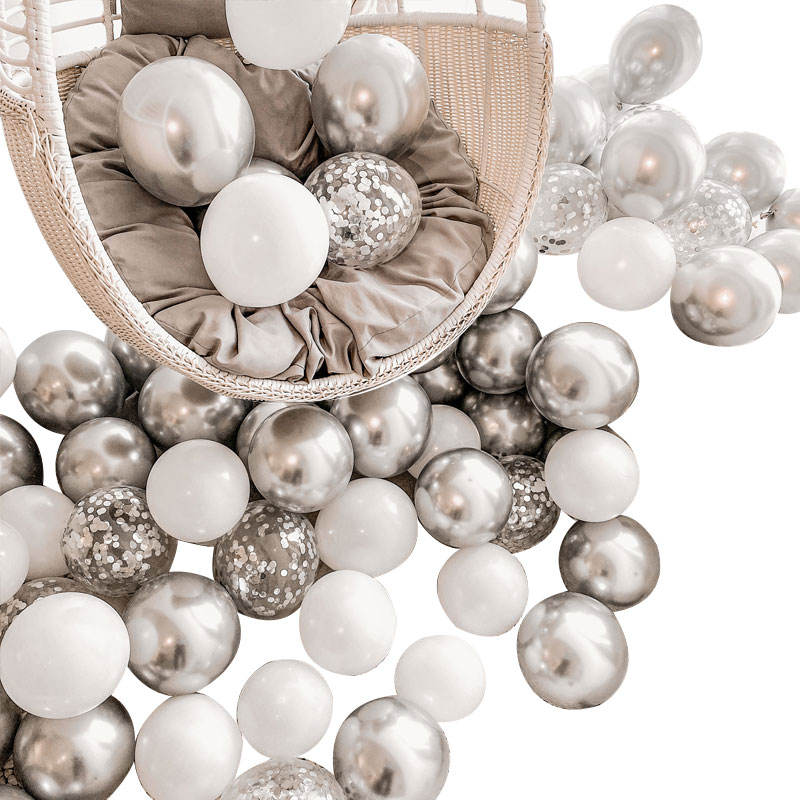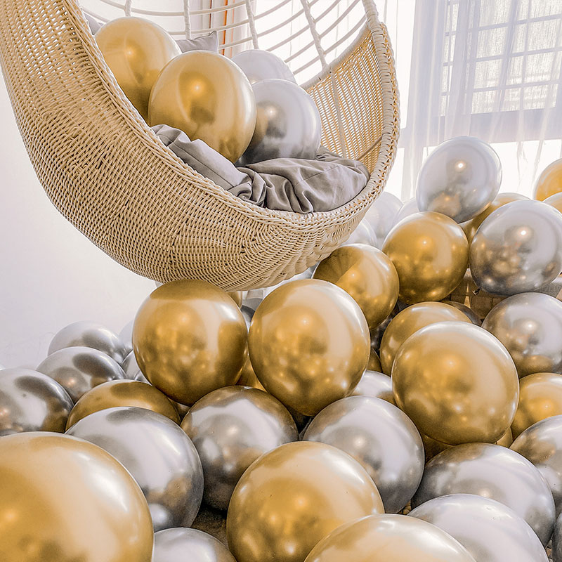 网红生日派对氦气球装饰场景加厚求婚结婚布置儿童金属银灰色飘空