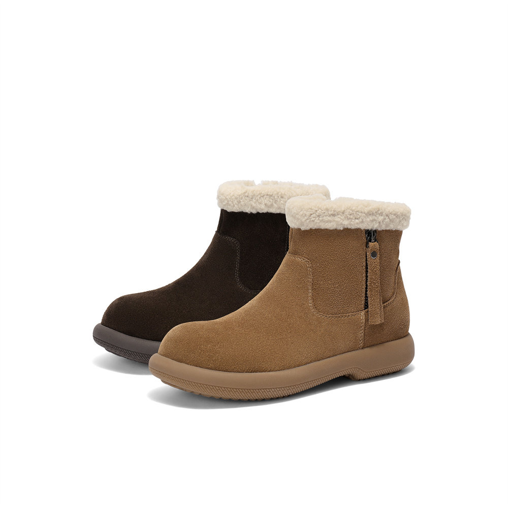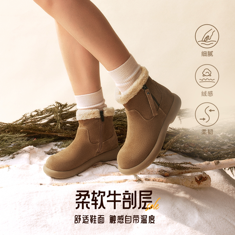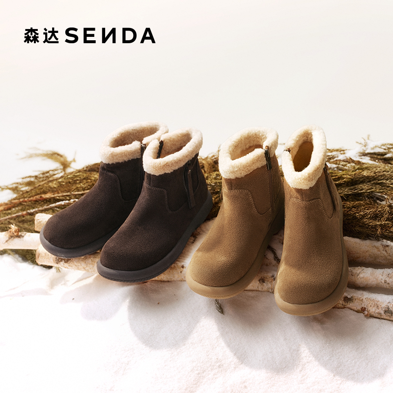 森达雪地靴女2025冬新商场同款牛皮舒适保暖户外短靴棉鞋XSM01DD5