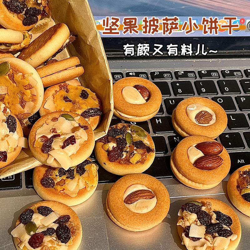 料好多!莲木叙坚果披萨小圆饼干巴旦木曲奇牛扎网红零食小饼干