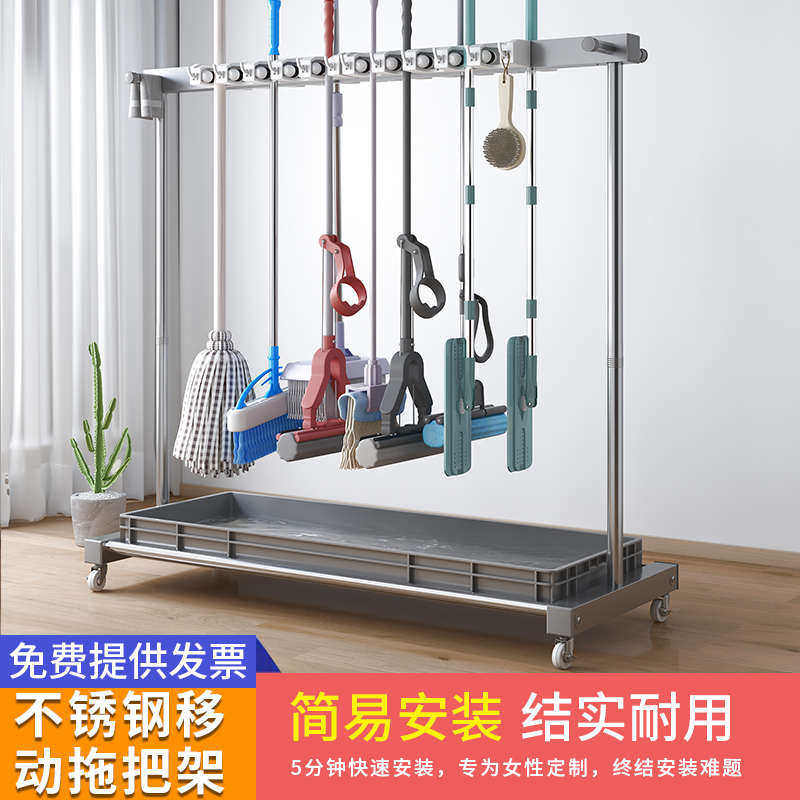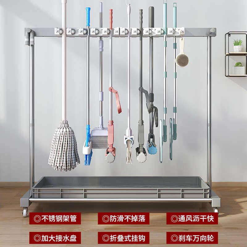 拖把架落地式可移动不锈钢置物架放扫把沥水加粗清洁工具收纳商用