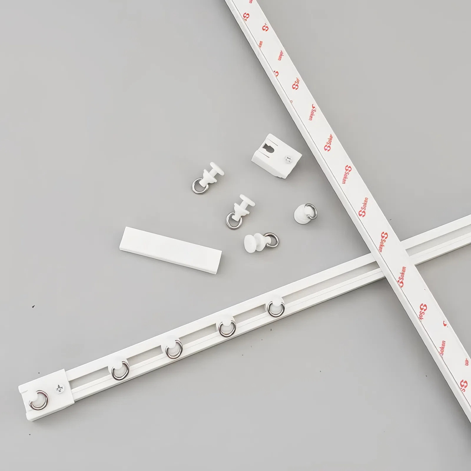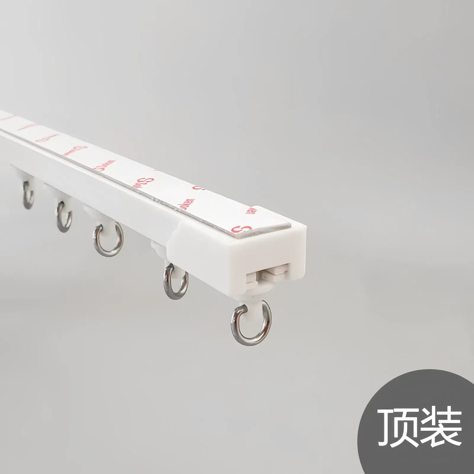 窗帘轨道免打孔滑轨侧装顶装自粘静音超薄导轨窗帘配件杆粘轨滑道