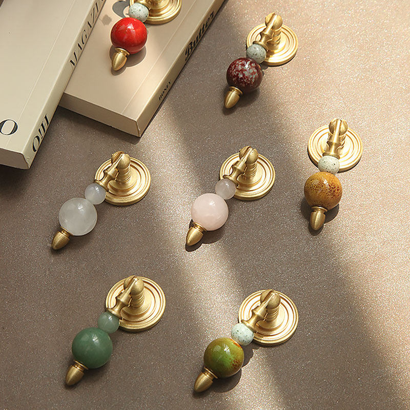创意法式复古中古水晶陶瓷黄铜橱柜门衣柜抽屉柜子鞋柜把手拉手