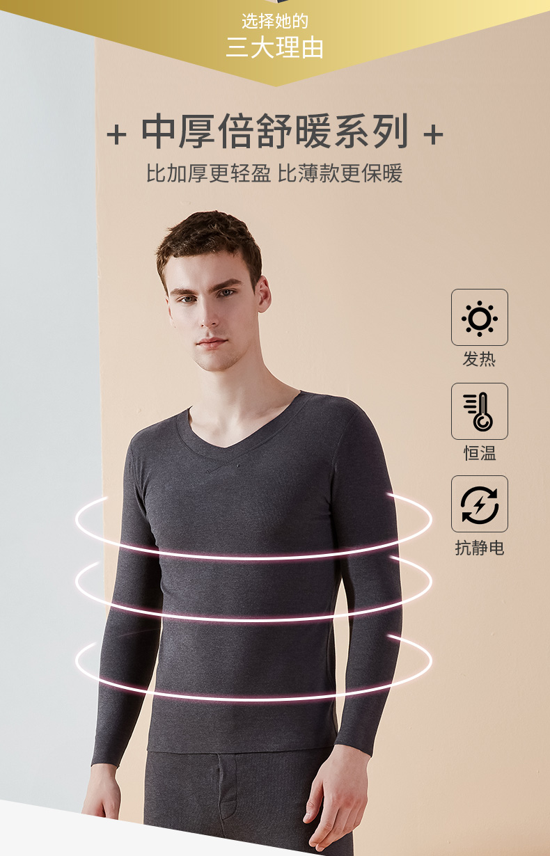 双面德绒保暖内衣套装男士无痕自发热紧身秋衣秋裤加绒加厚打底衫