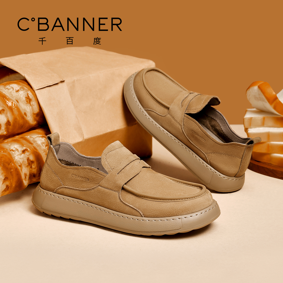 千百度真皮休闲皮鞋一脚蹬乐福鞋