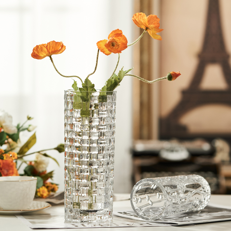 欧式直筒藤编透明加厚玻璃花瓶 百合富贵竹N水培客厅餐桌摆件装饰