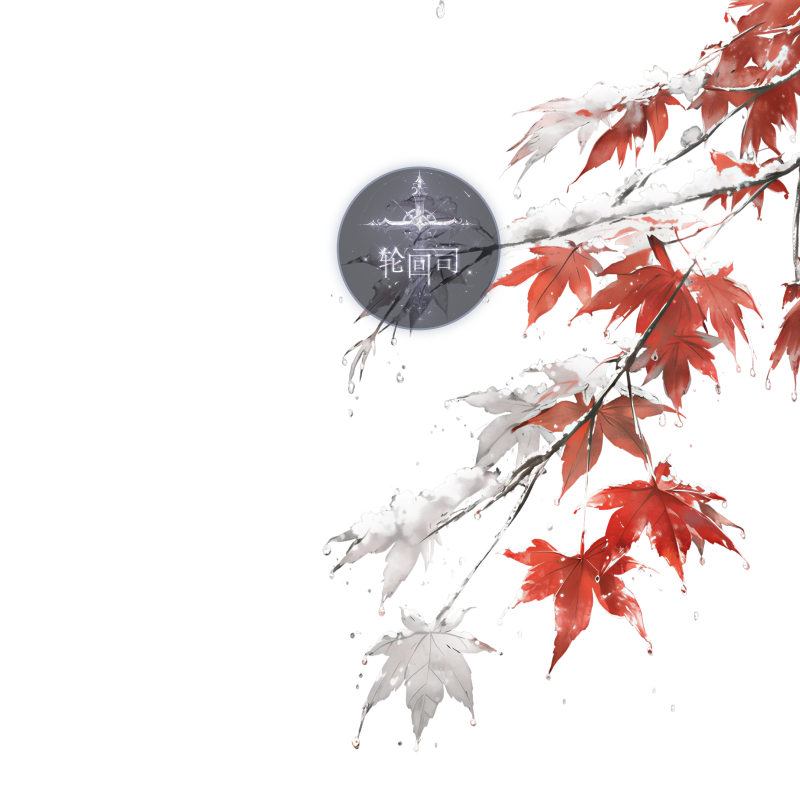 中式古风冬天白雪下雪秋天枫叶树枝装饰元素原创可商设计素材PNG