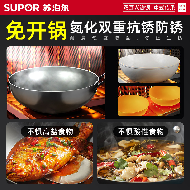 苏泊尔双耳铁锅炖一体锅炒菜锅家用老式无涂层炒锅电磁炉燃气灶用