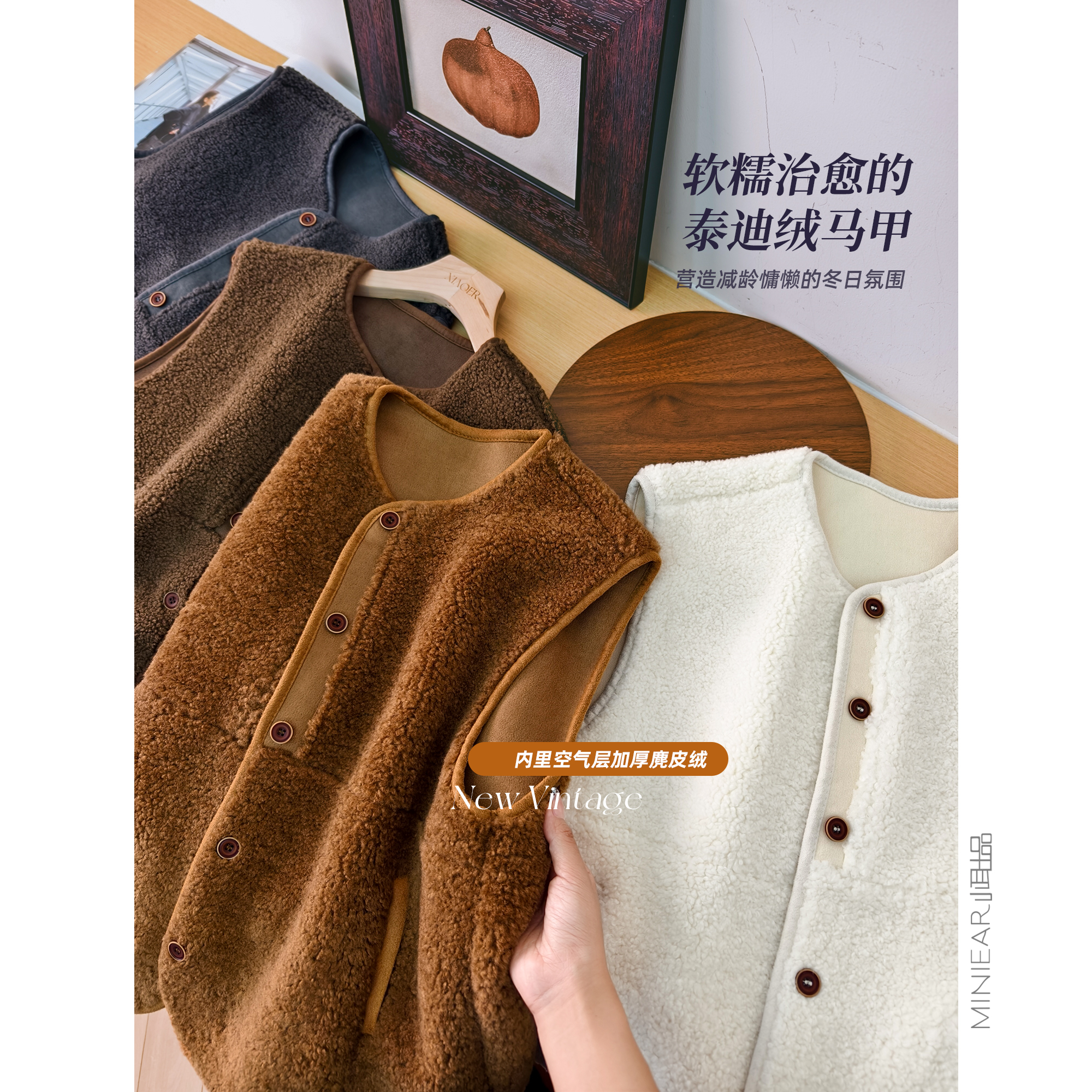 小耳出品 小羊羔马甲 细腻小颗粒绒/复合软麂皮内里/同色绲边女