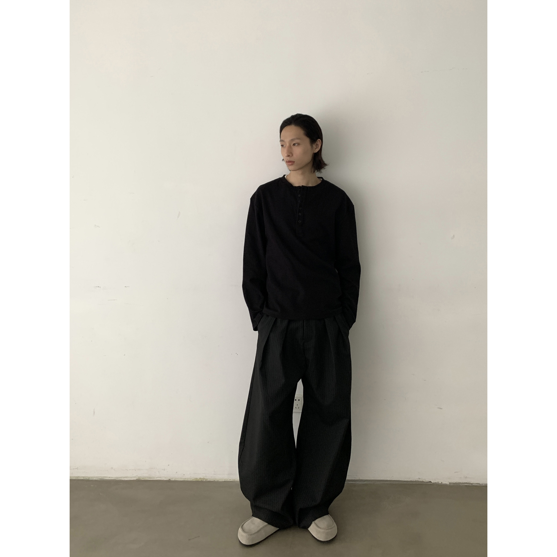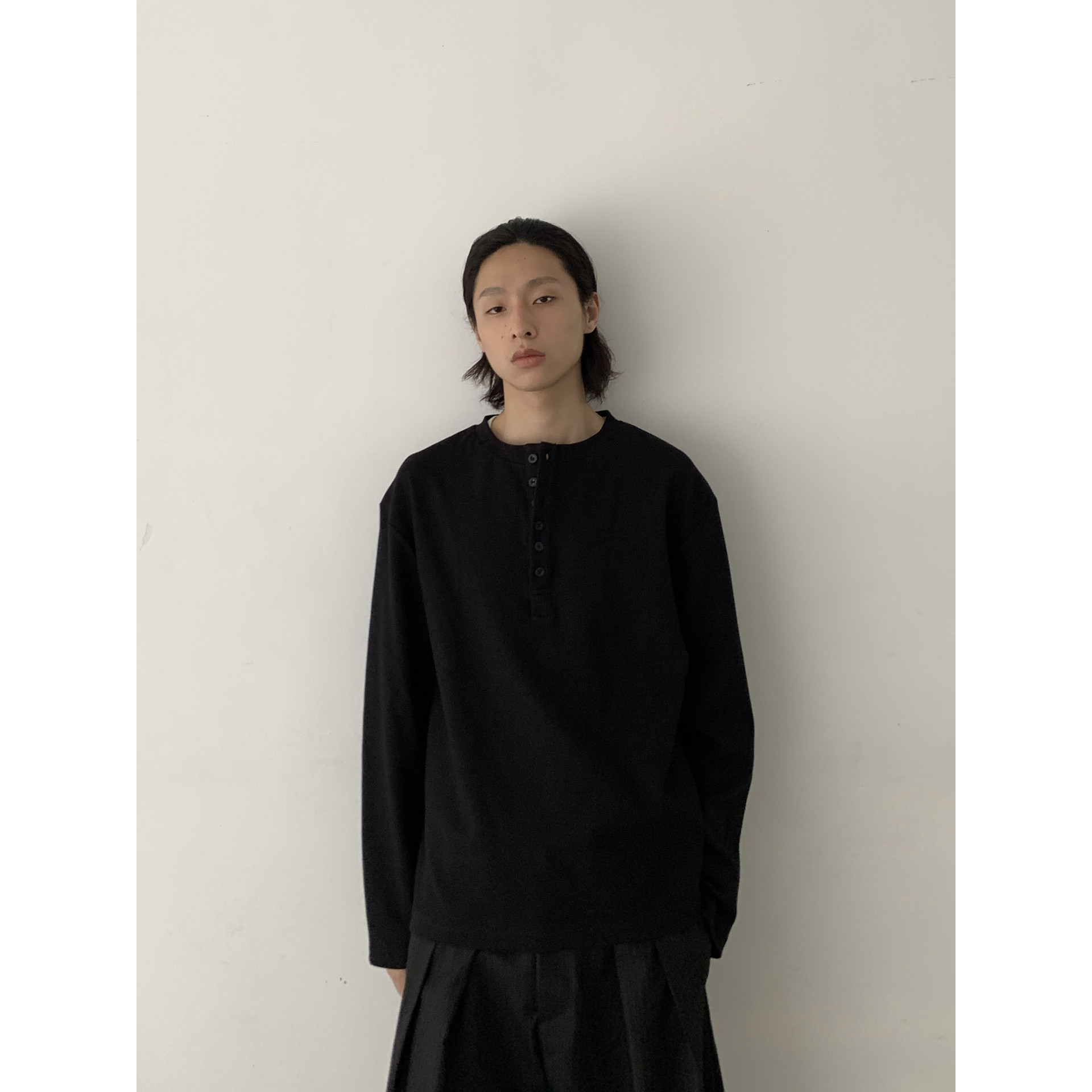INKNOTS美式复古重磅300g空气感宽松亨利领长袖T恤男女老钱打底衫