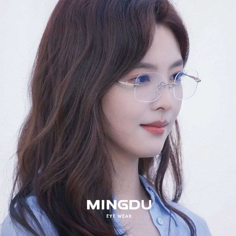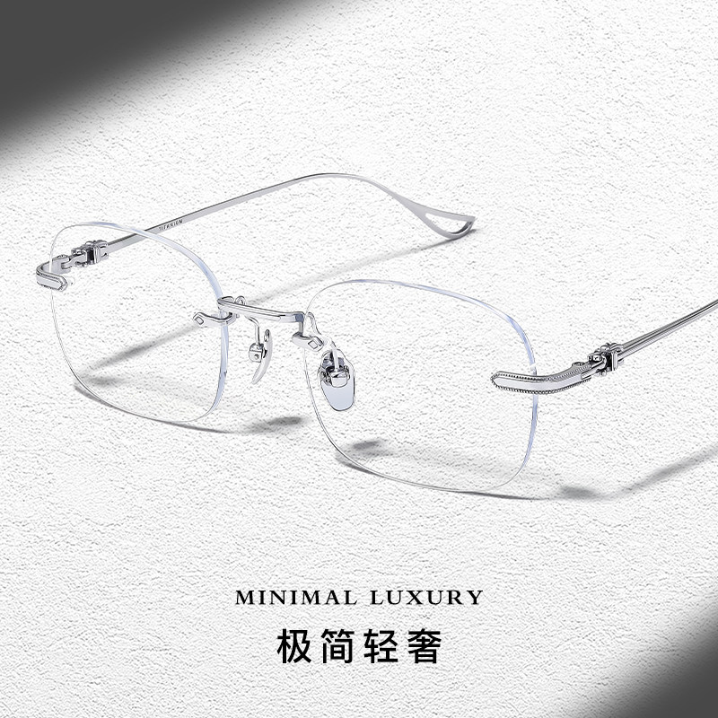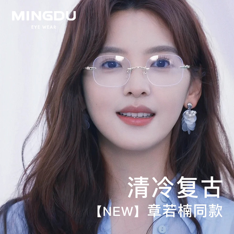 章若楠同款超轻纯钛无边框眼镜近视女可配度数防蓝光素颜高级感男