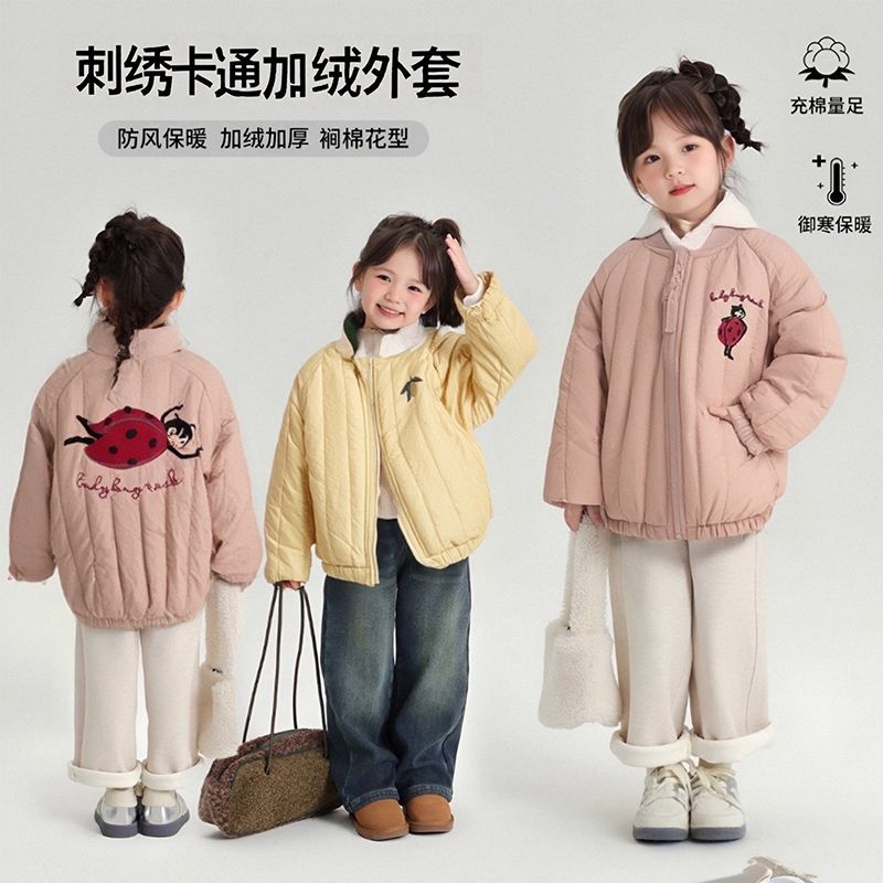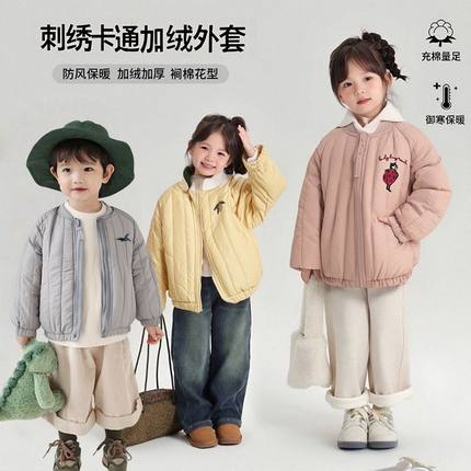 棉致儿童棉服加厚外套加绒棉上衣男女童洋气刺绣棒球服宝宝冬装潮