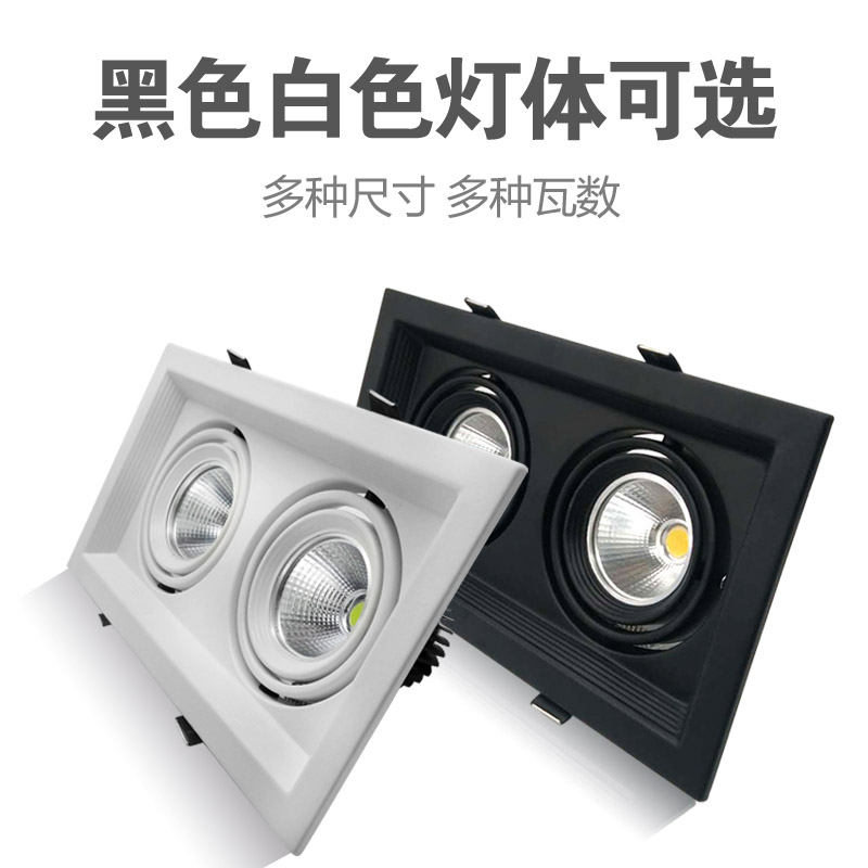 LED方形射灯单双头三头COB斗盏灯天花筒灯AR111两眼3头超薄斗胆灯
