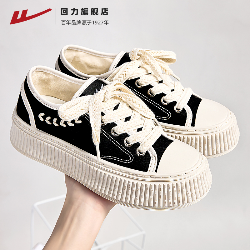 回力女鞋帆布鞋2025秋季新款小众百搭厚底休闲板鞋松糕饼干鞋子女