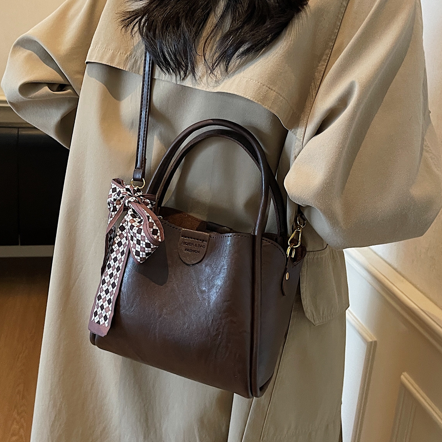 多隔层复古美拉德丝巾手提斜挎包2025新款潮百搭简约小包包女款