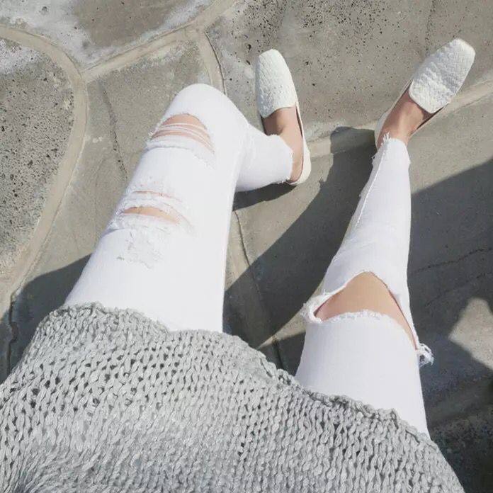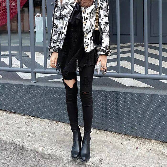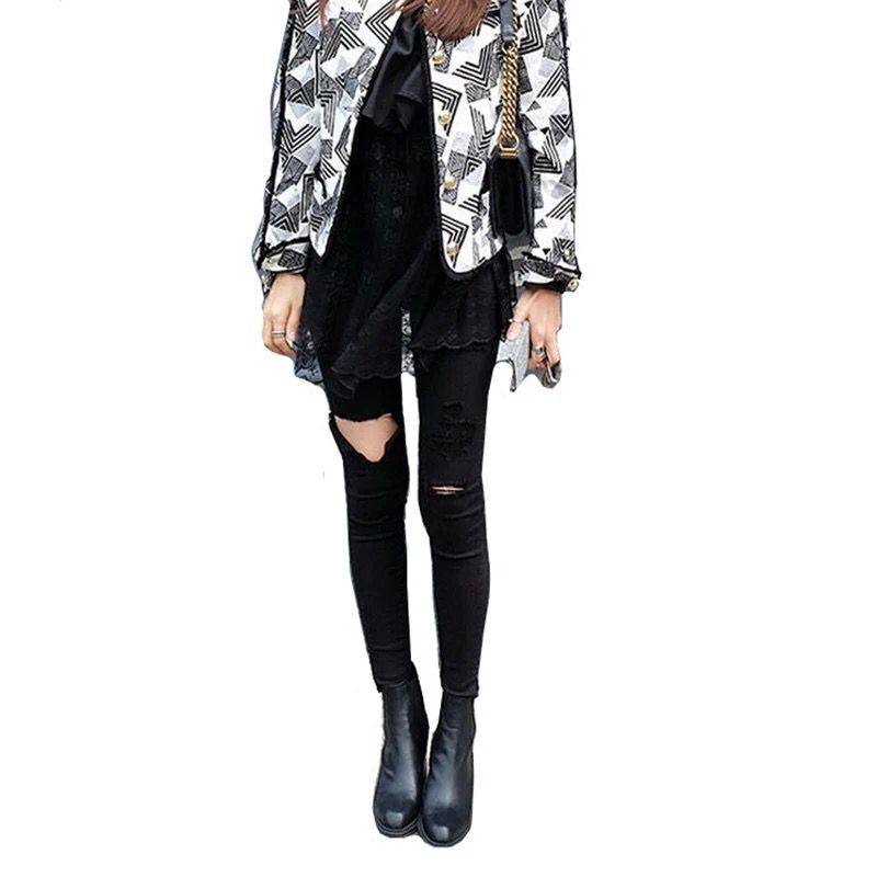 2023新款春秋季破洞打底裤女裤紧身外穿薄款黑色九分小脚牛仔裤子