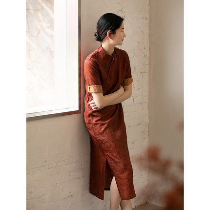 布小匠桑蚕丝花罗红云纱新中式改良旗袍裙子女香云纱真丝连衣裙女