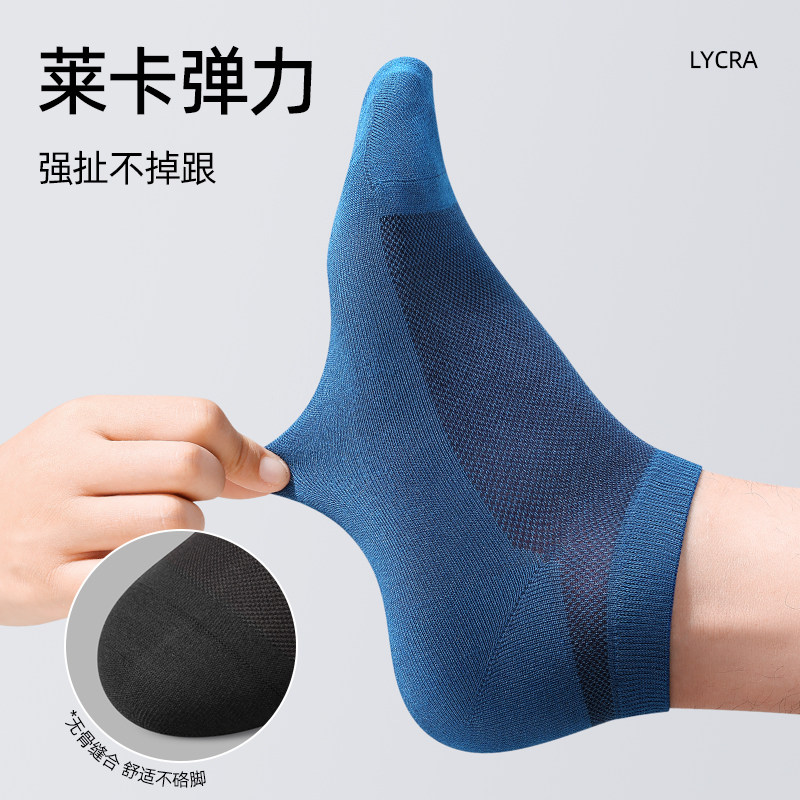 船袜男士夏季薄款冰丝防臭吸汗透气网眼灰色商务不掉跟桑蚕丝短袜