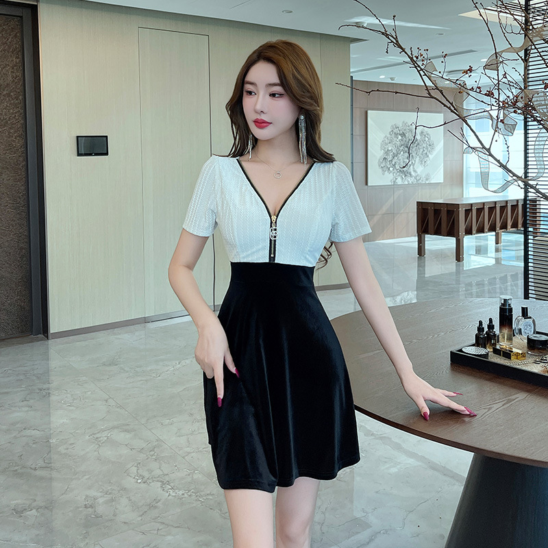 美容院美容师工作服女酒店美发足疗会所足浴疗技师3645连衣裙