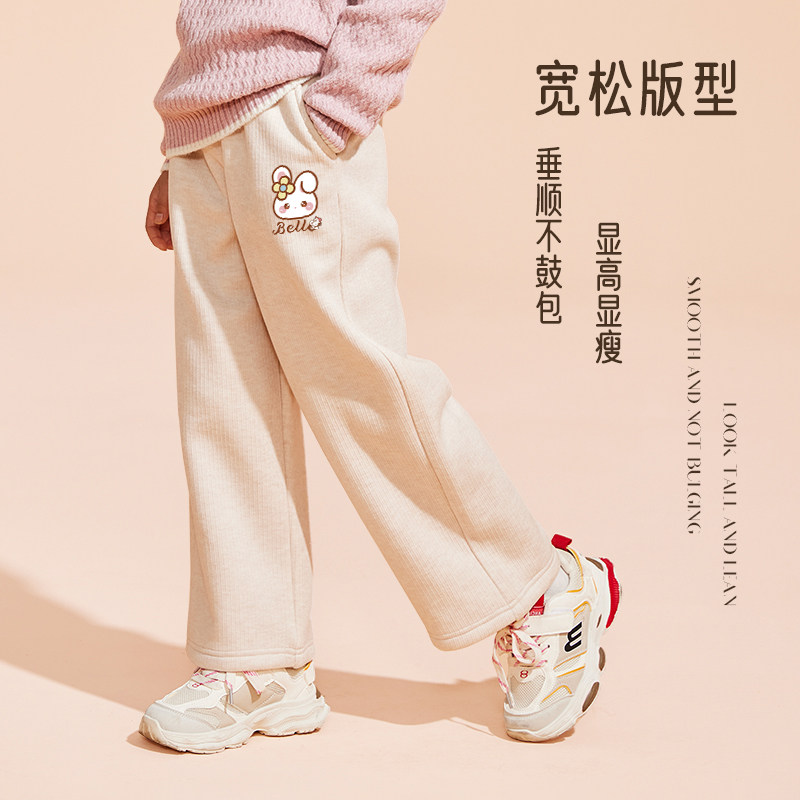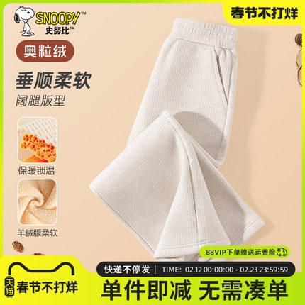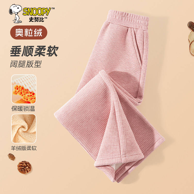 史努比童装女童冬季加绒裤子女大童糯米阔腿裤儿童洋气时髦长裤厚