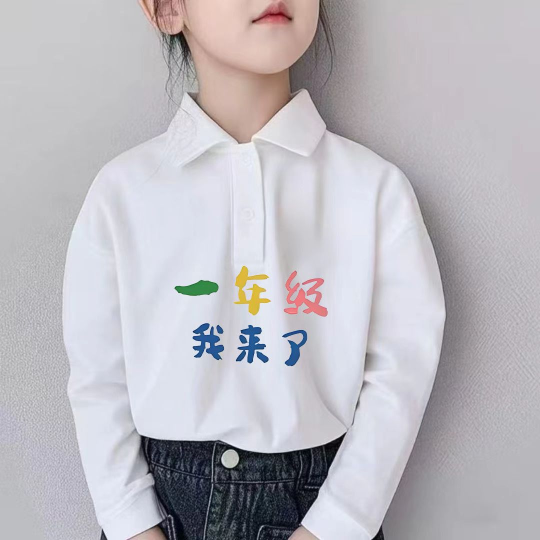 纯棉童装polo领休闲中大童长袖t恤上衣翻领潮牌字母印花女童卫衣