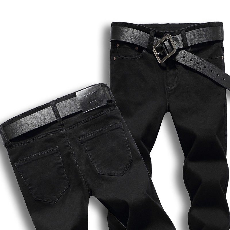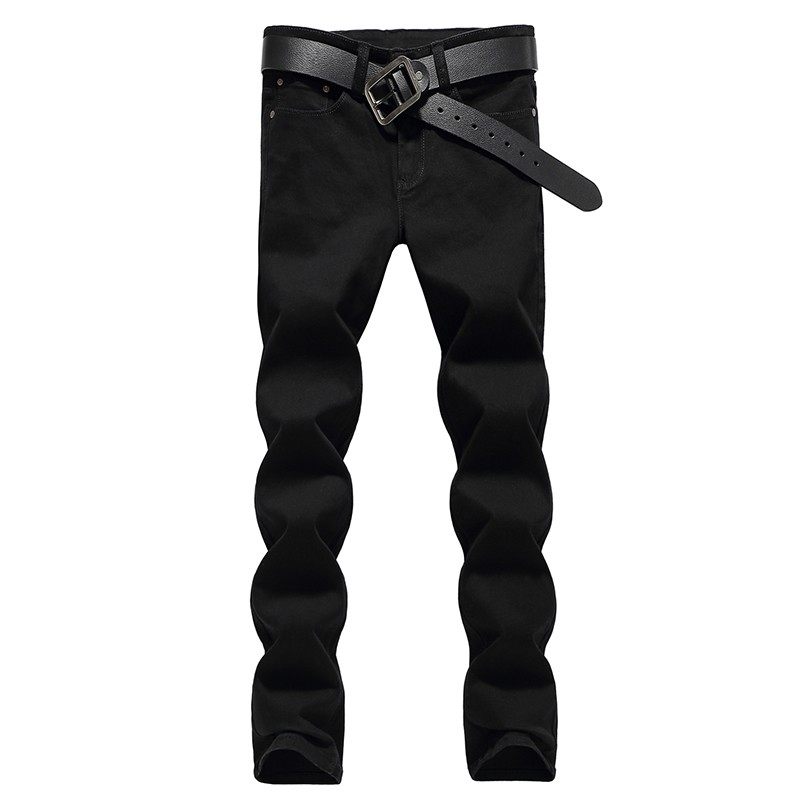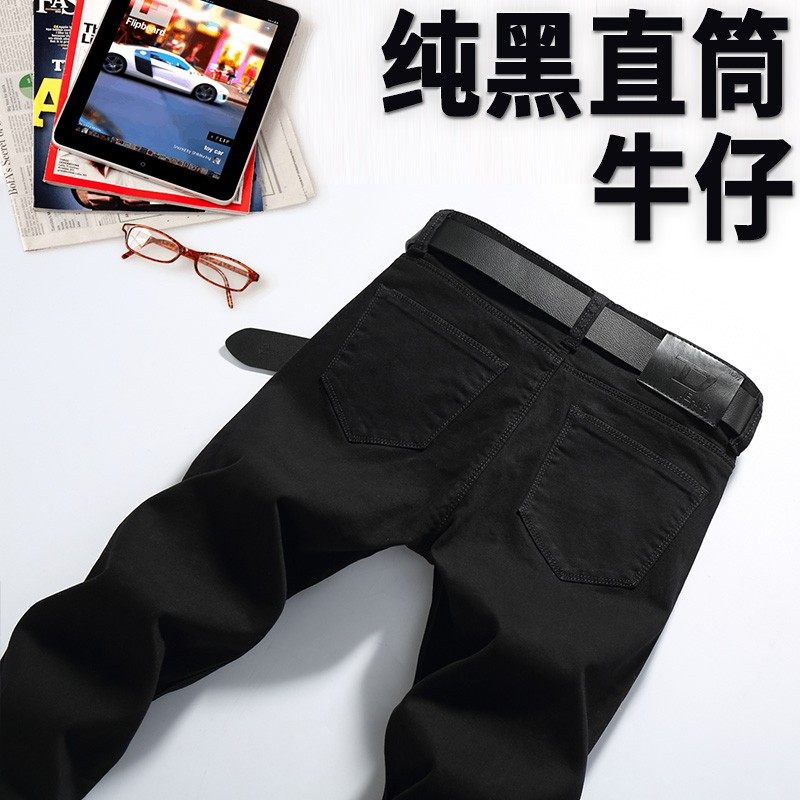 2021秋冬修身小直筒男裤子青年弹力韩版小脚裤潮休闲纯黑色牛仔裤