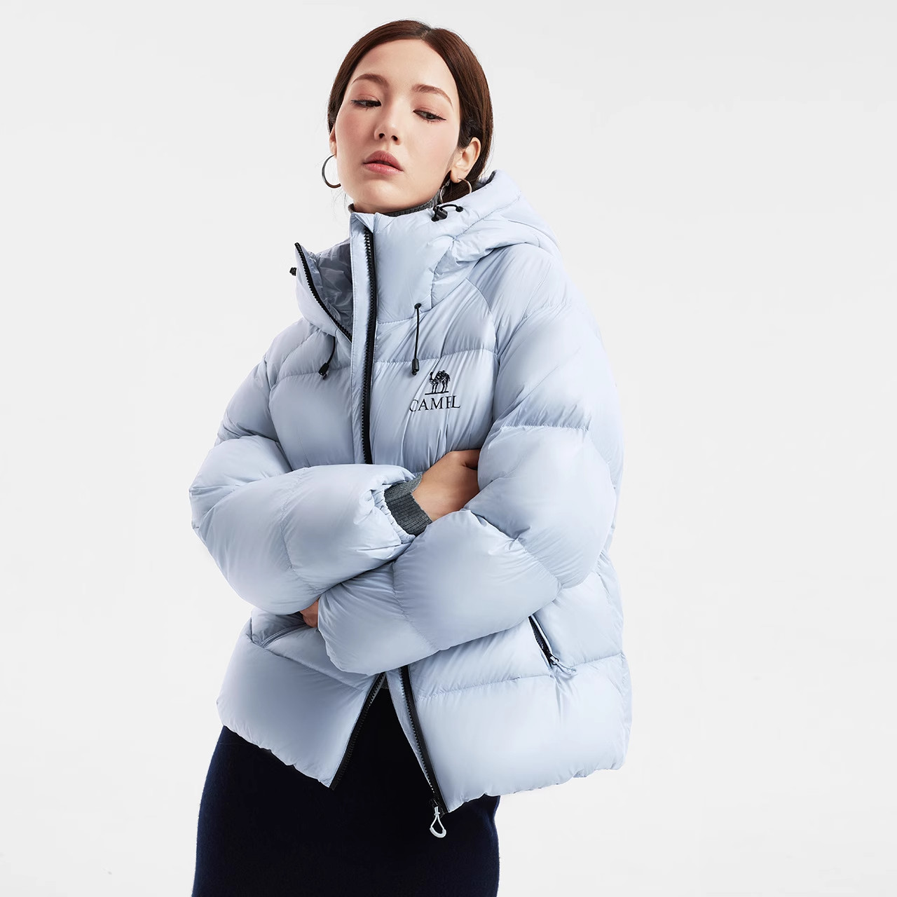 骆驼黑钻5PRO女装粉色羽绒服短款2025冬季新款保暖连帽羽绒面包服