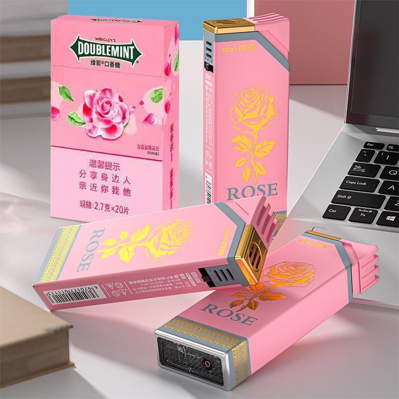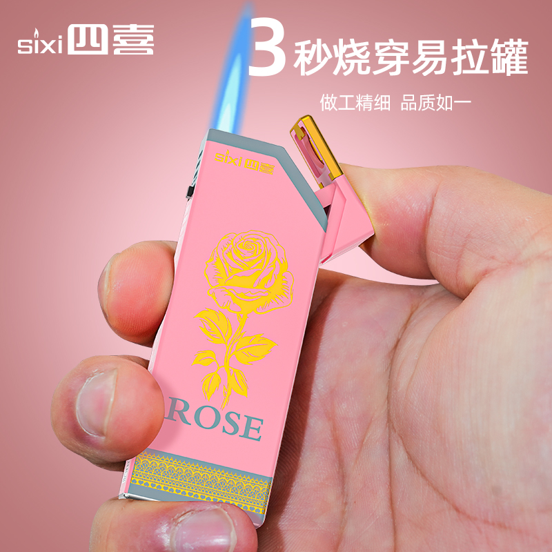 四喜50支翻盖防风打火机金属粉色玫瑰加宽可充气批发定制官方正品