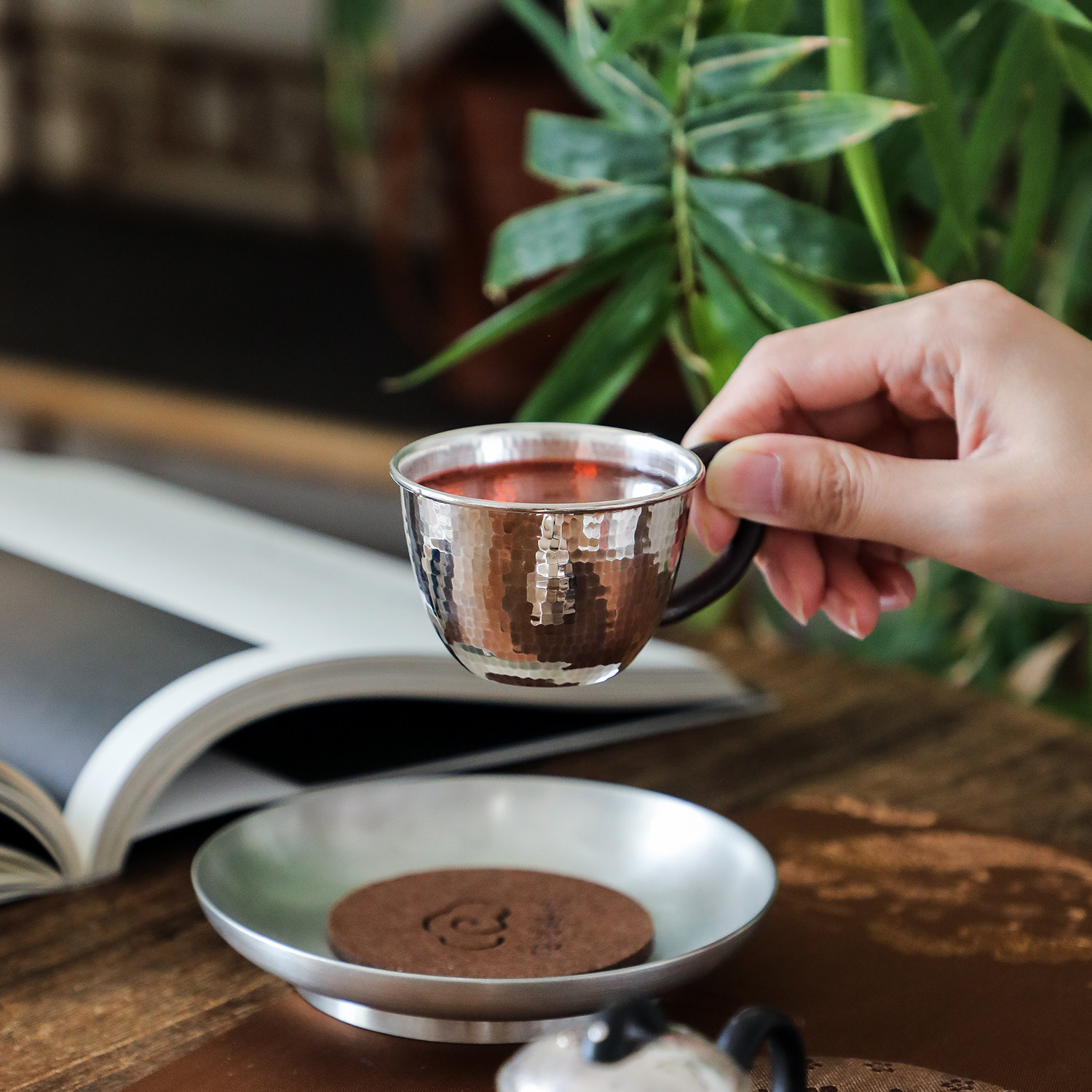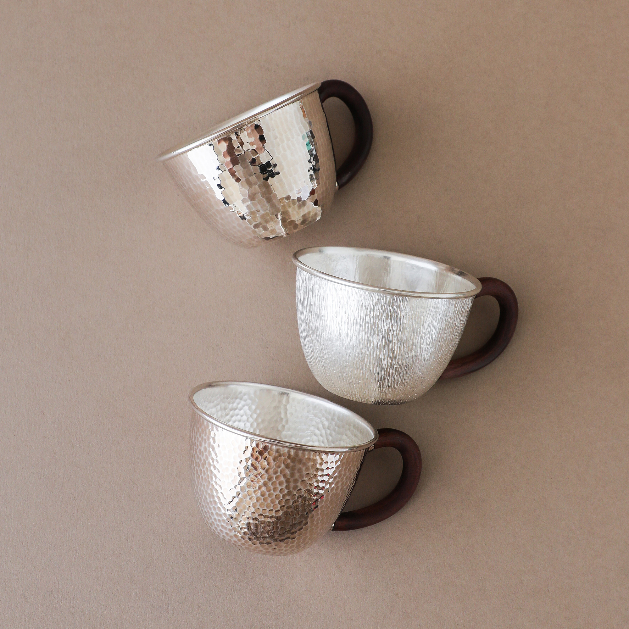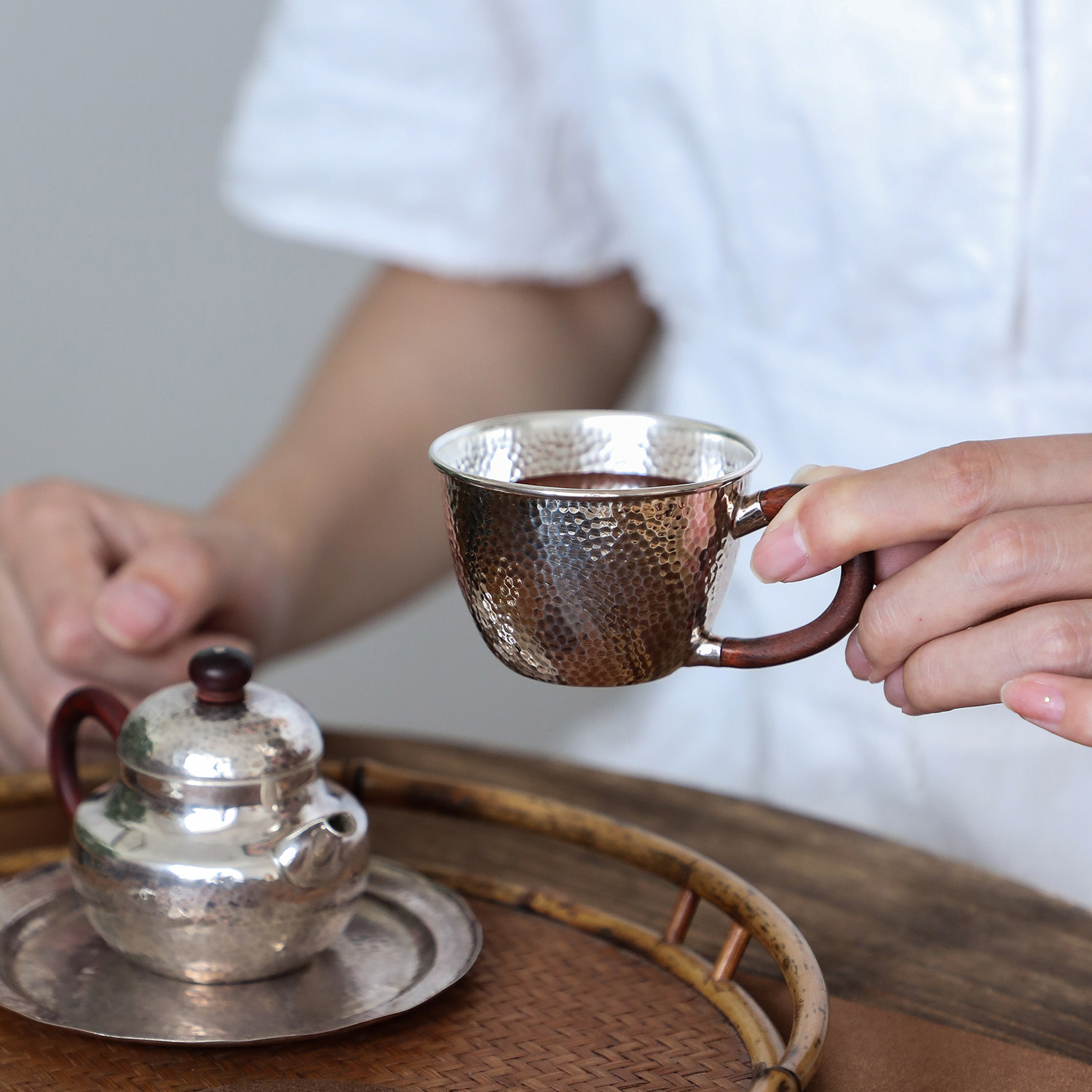 纯银时代 小小马克杯足银999手工锤纹极简小众银杯防烫80ml大中小