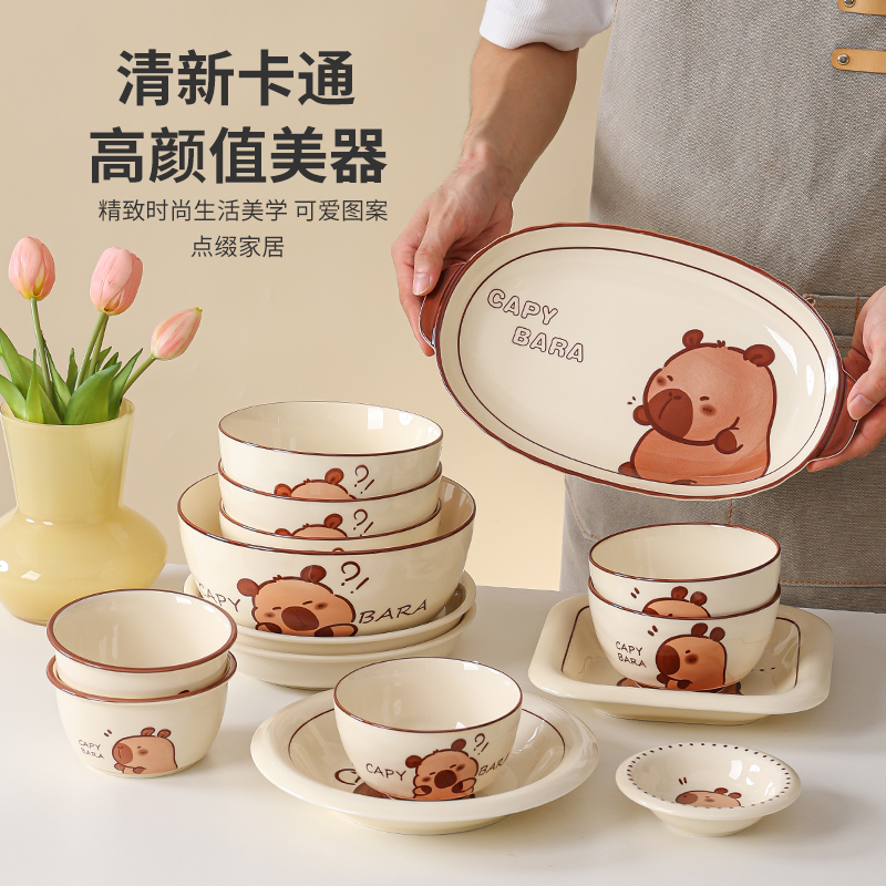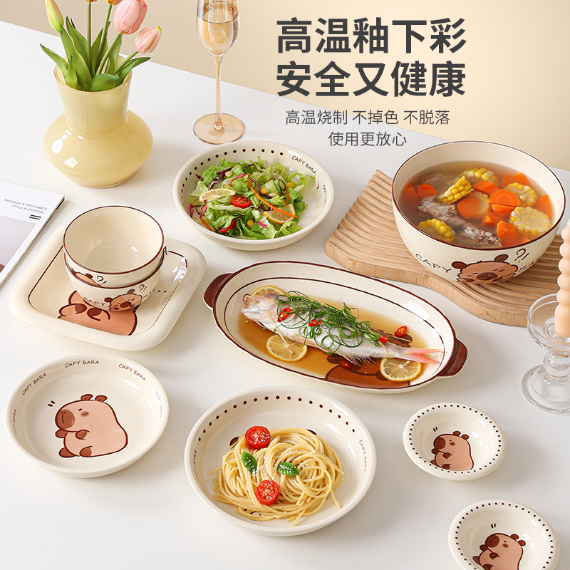碗家用2025新款釉下彩陶瓷饭碗面碗卡通碗盘碗碟套装可爱餐具5寸