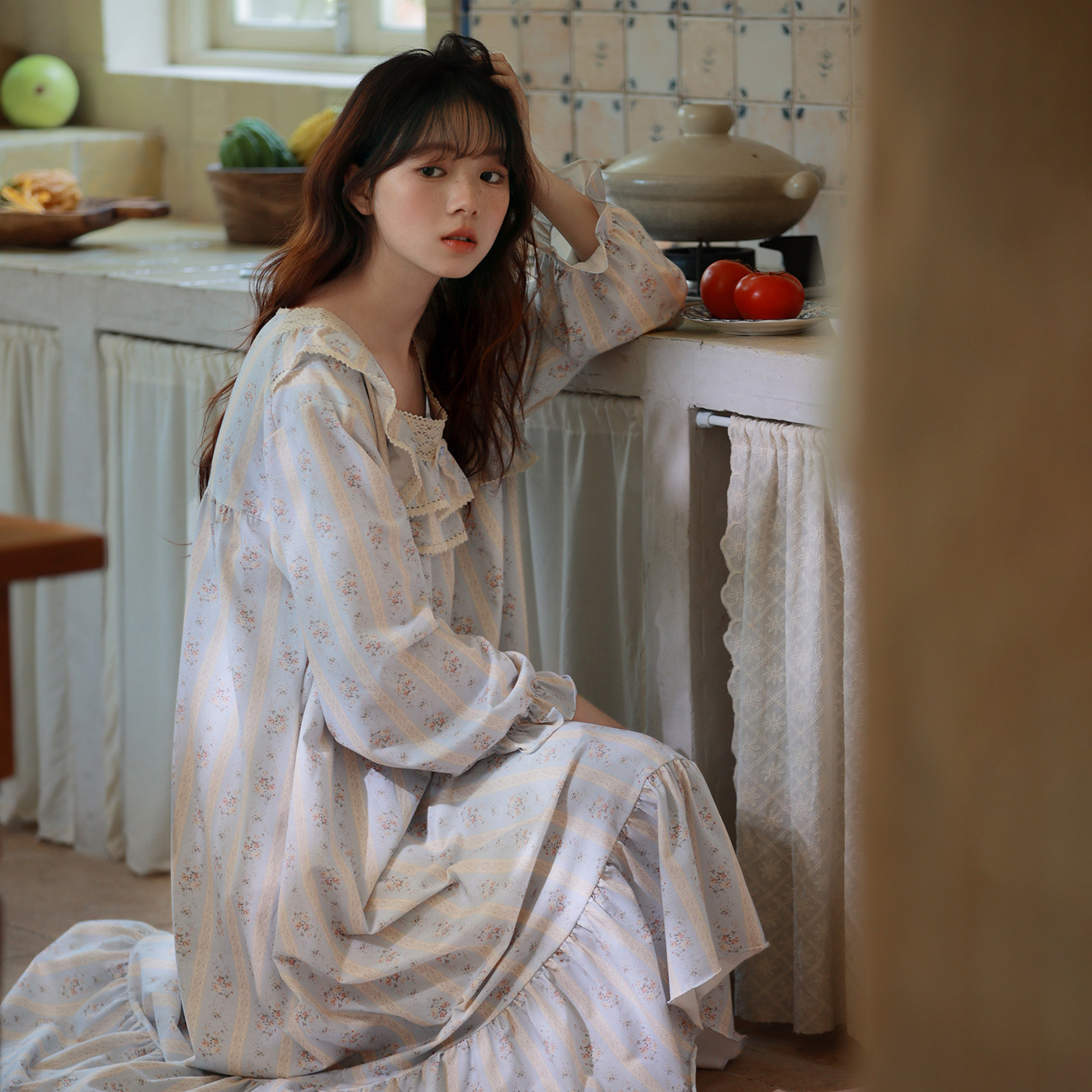 马克公主法式碎花纯棉睡裙女春秋公主甜美风家居服连衣裙温柔睡衣